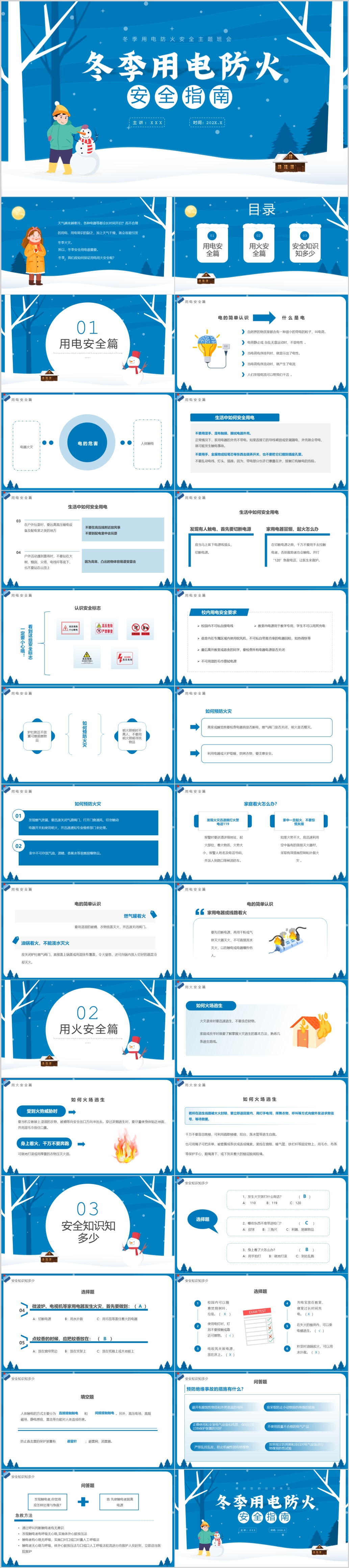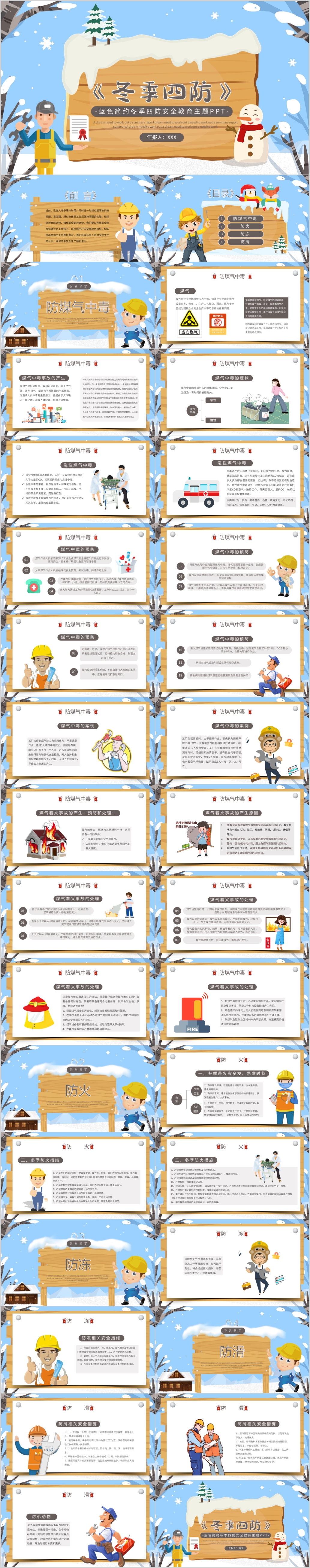 蓝色简约冬季四防安全教育主题通用PPT模板