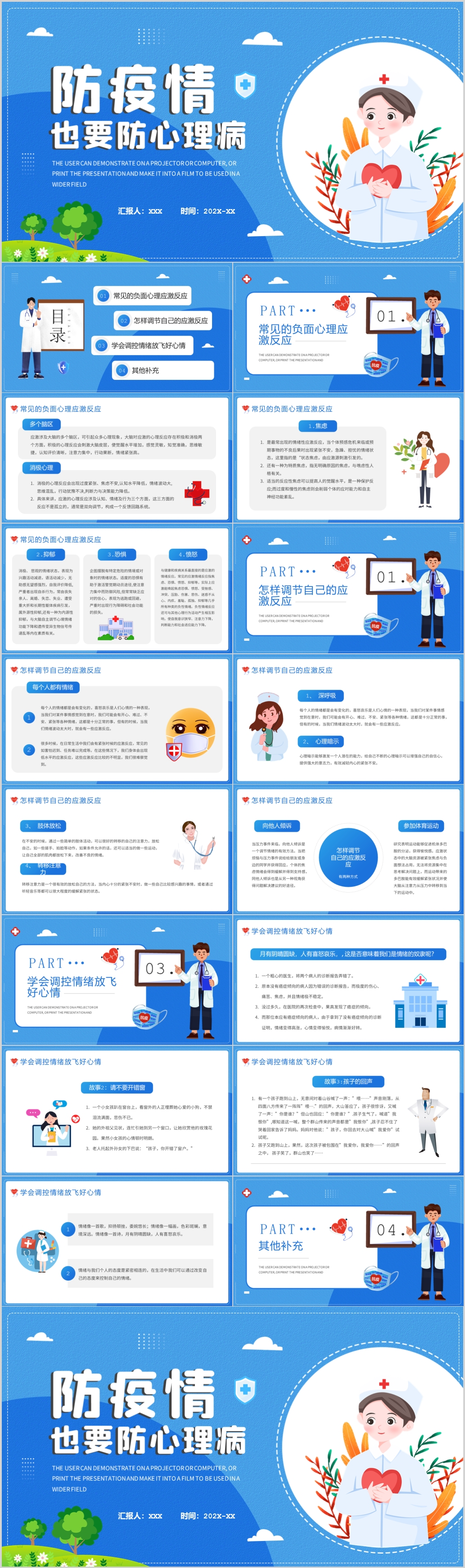 蓝色防疫情也要防心理病疫情防控辅导主题课件PPT模板