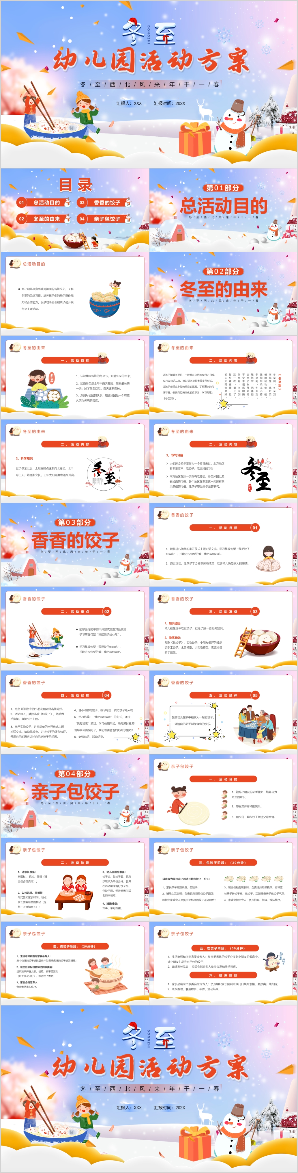 卡通幼儿园中小学生冬至主题班会介绍课件PPT模板
