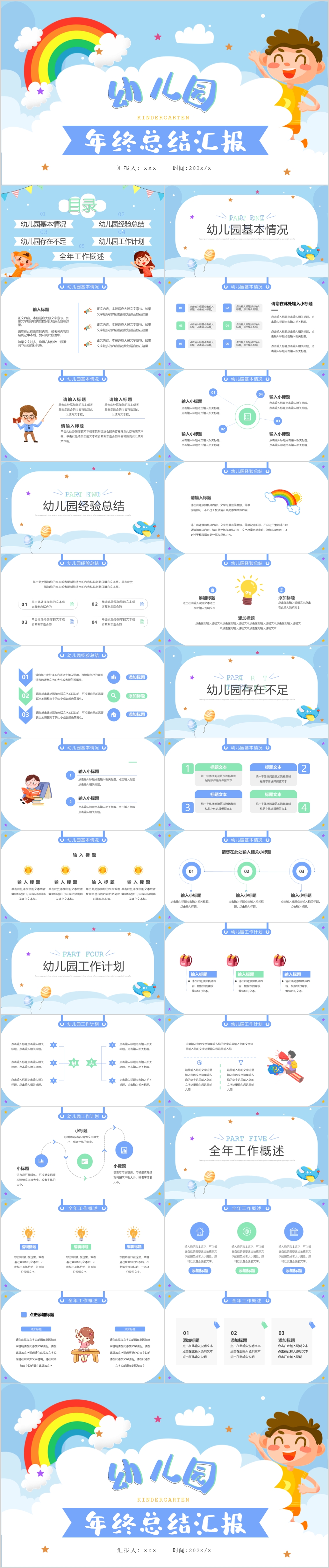 2022年卡通幼儿园幼师年终工作总结汇报计划PPT模板