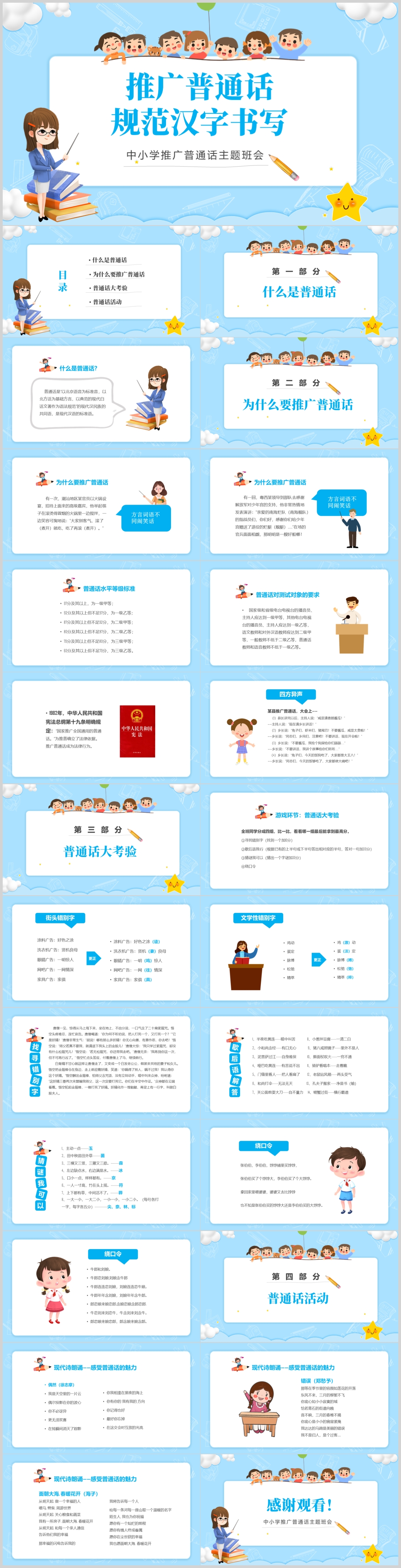 蓝色可爱中小学生推广普通话活动宣传周主题班会ppt模板