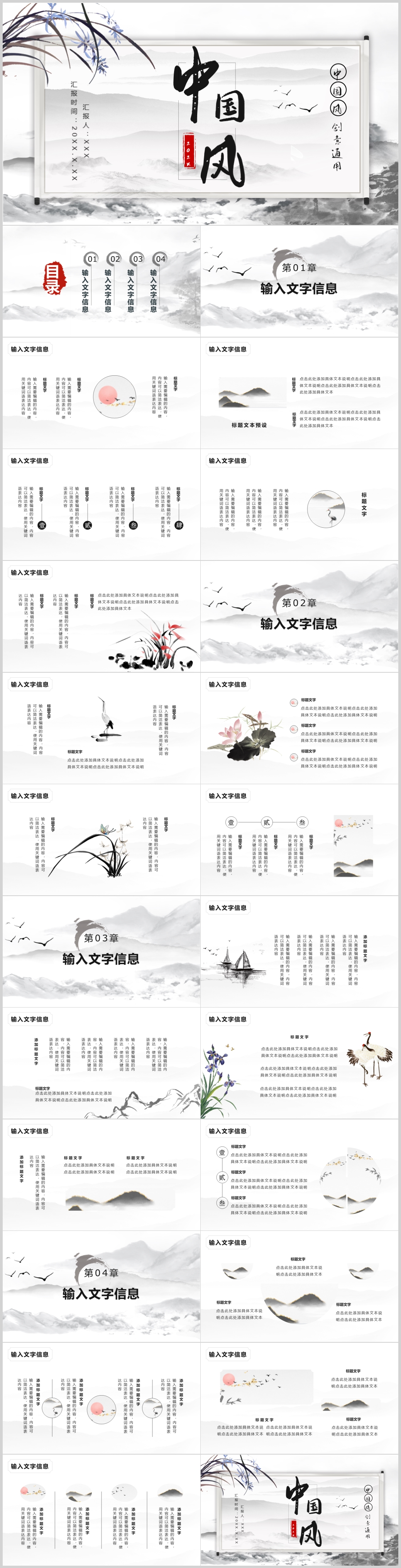 水墨中国风古风工作复古古典总结汇报述职PPT模板