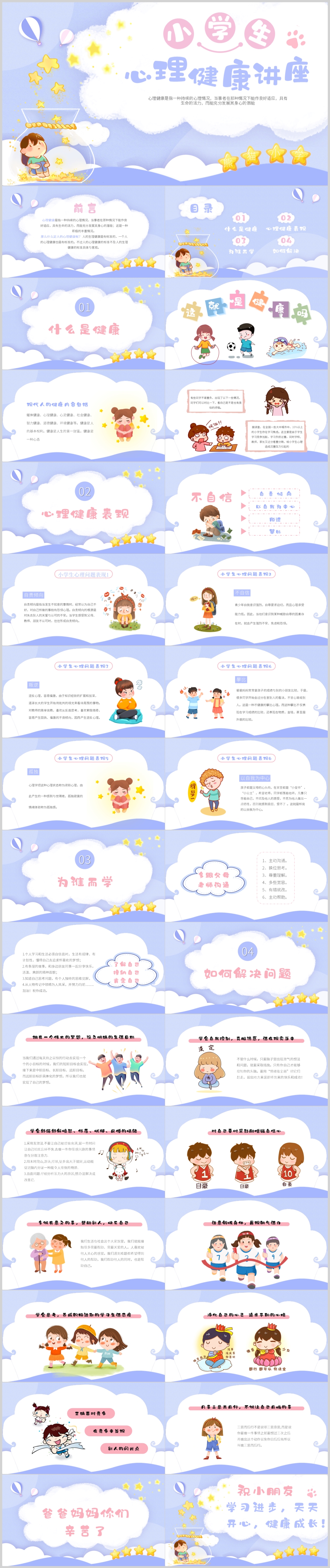 卡通幼儿园小学生心里健康知识主题班会课件ppt模板