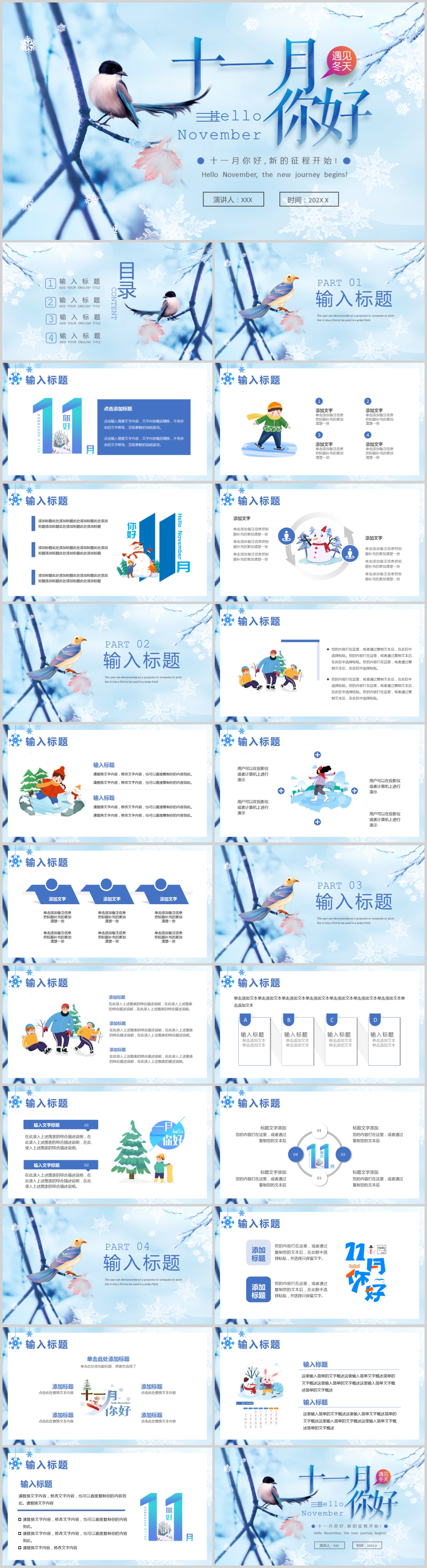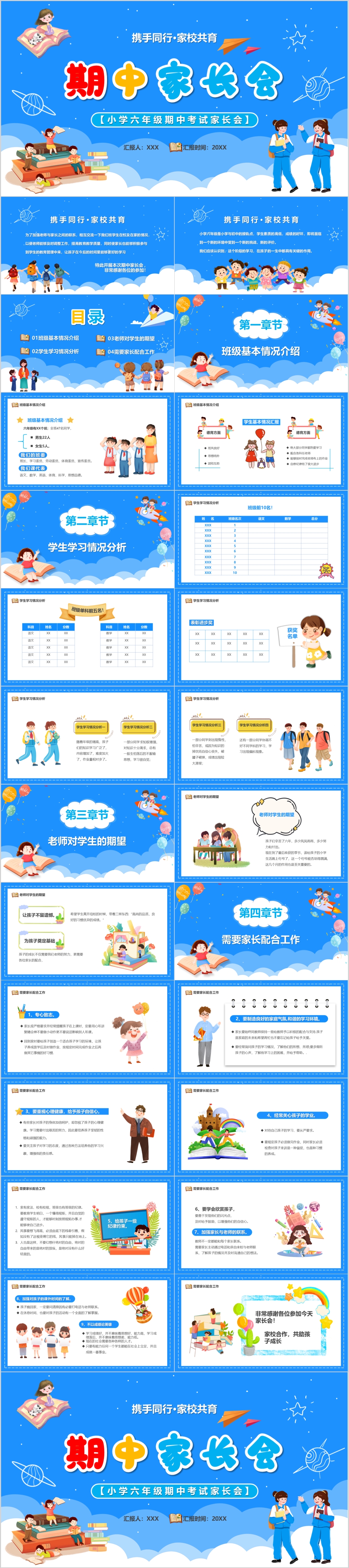 蓝色可爱卡通风小学期中家长会主题班会PPT模板