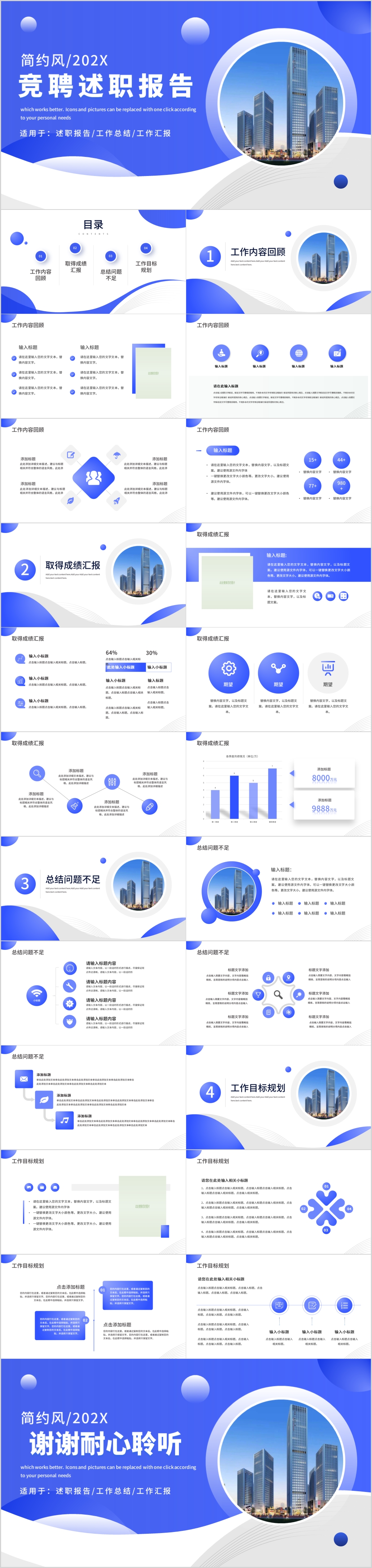 蓝色大气岗位竞聘个人简历转正报告PPT模板