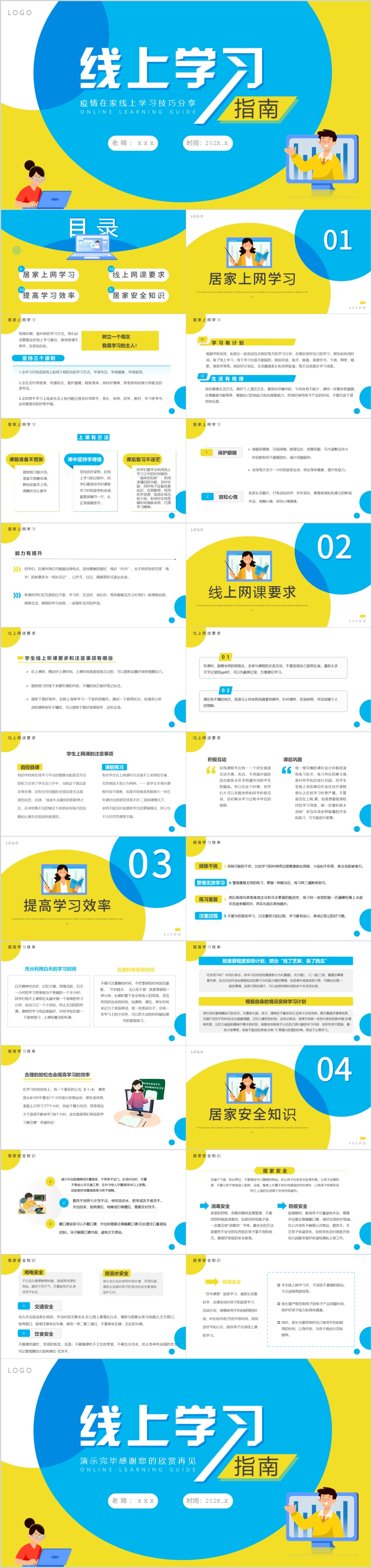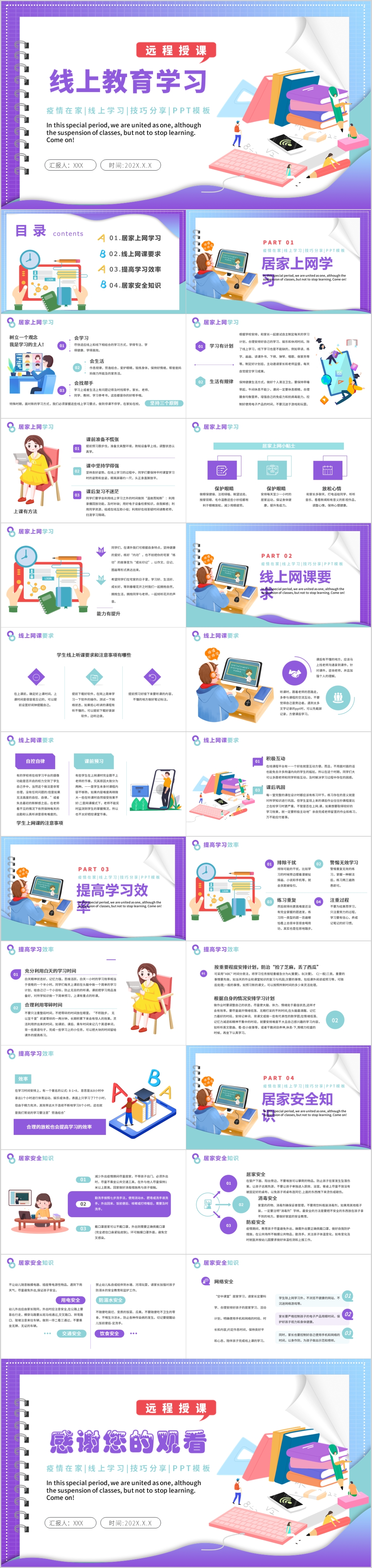 卡通教学设计网络在线教育线家线上学习指南主题班会ppt模板