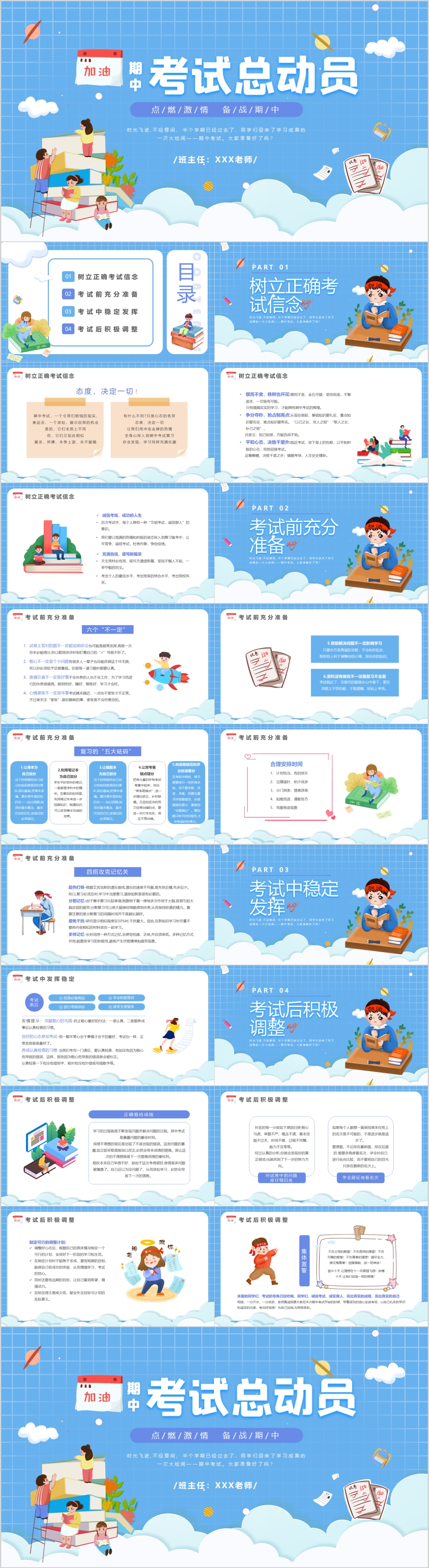 蓝色卡通末期期中期末考试前准备动员大会主题班会ppt模板
