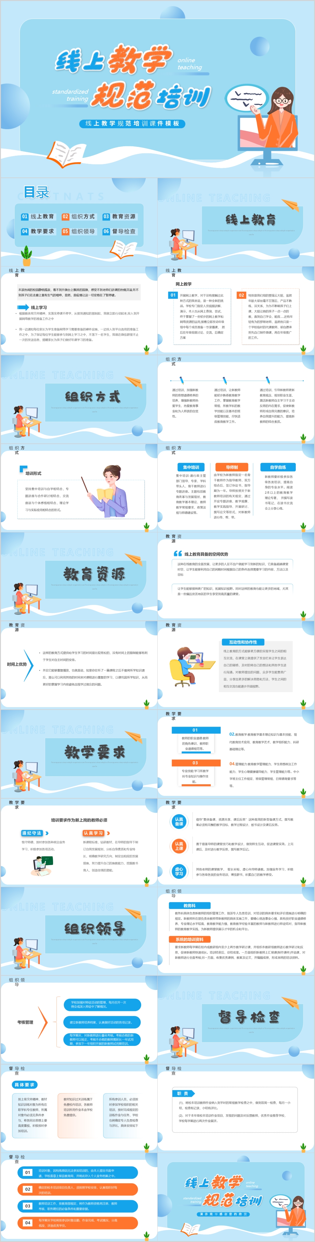 蓝色卡通停学不听课线上教育线上教学网课规范培训课件ppt模板