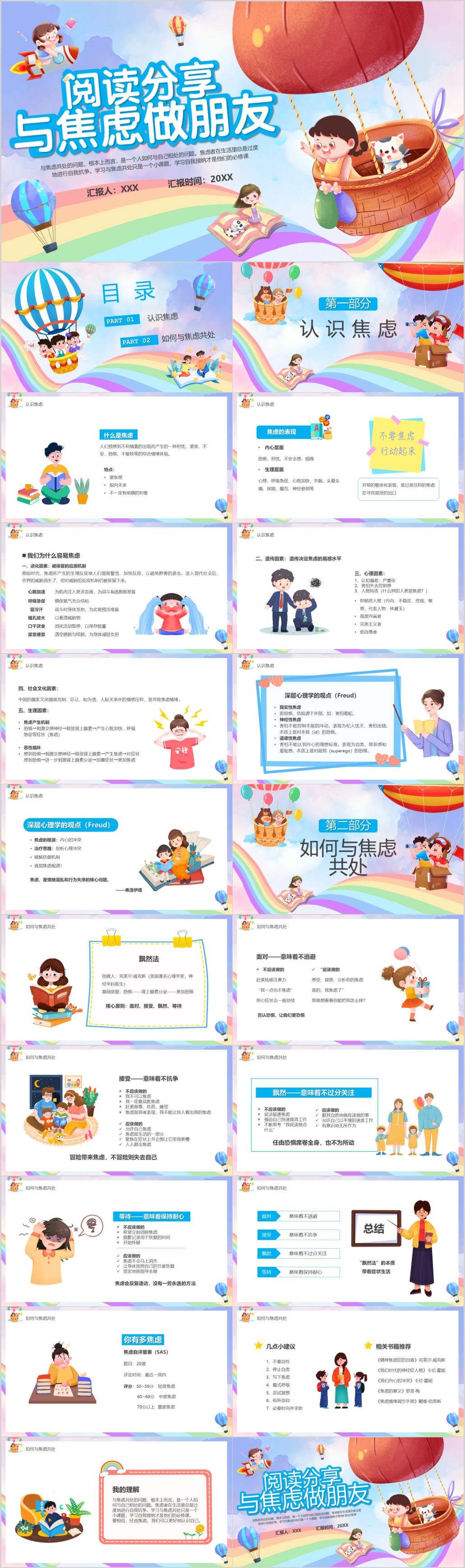 卡通阅读分享好书推荐读书会看好书通用ppt模板