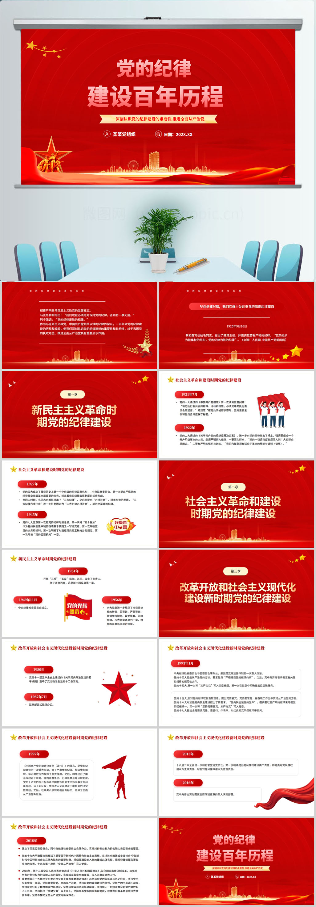 党的纪律建设百年历程党建PPT模版设计