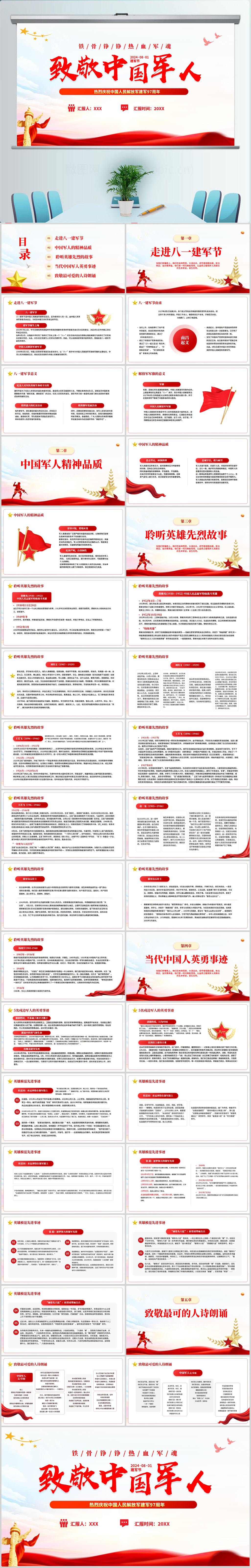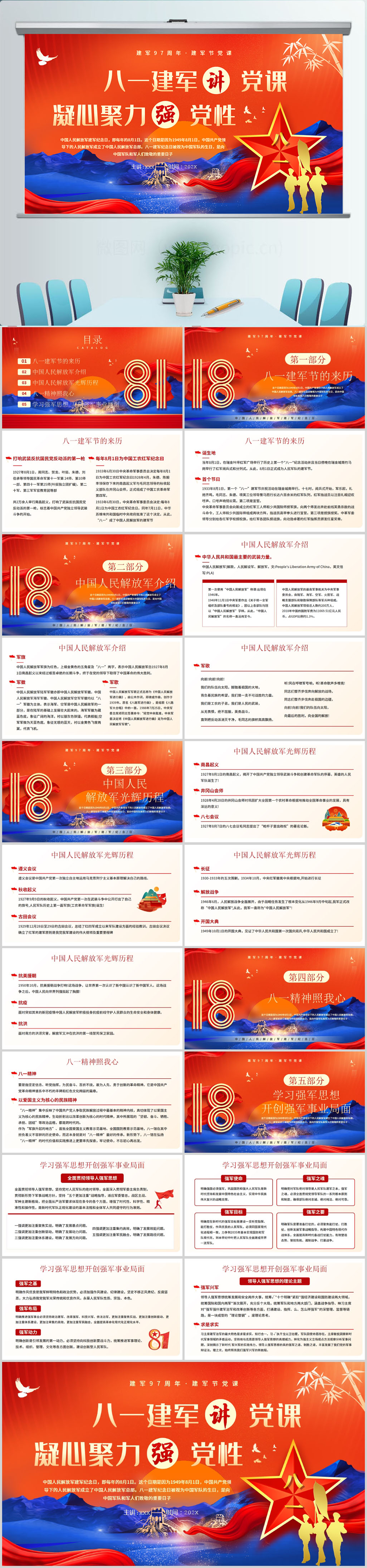 八一建军节96周年党课党政学习通用PPT模板设计