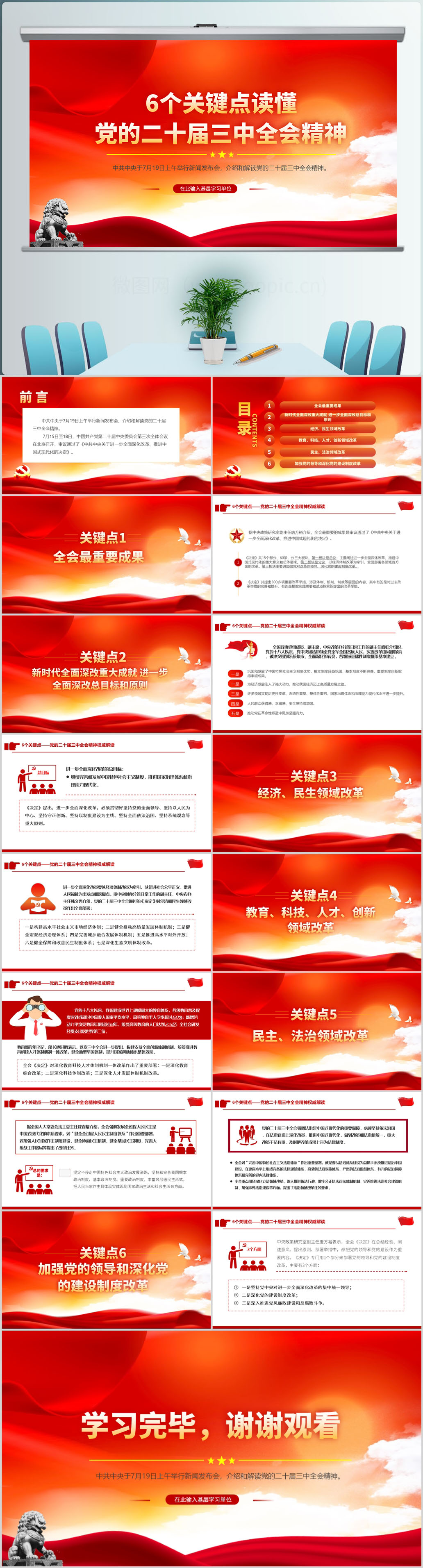 学习6个关键点读懂二十届三中全会精神解读ppt模板(内含WORD演讲稿)