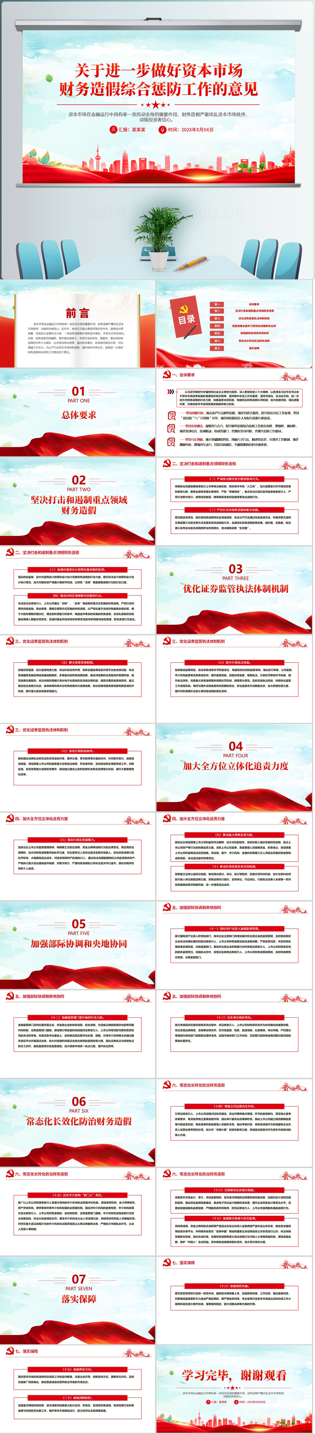 关于进一步做好资本市场财务造假综合惩防工作的意见PPT模板(内含WORD演讲稿