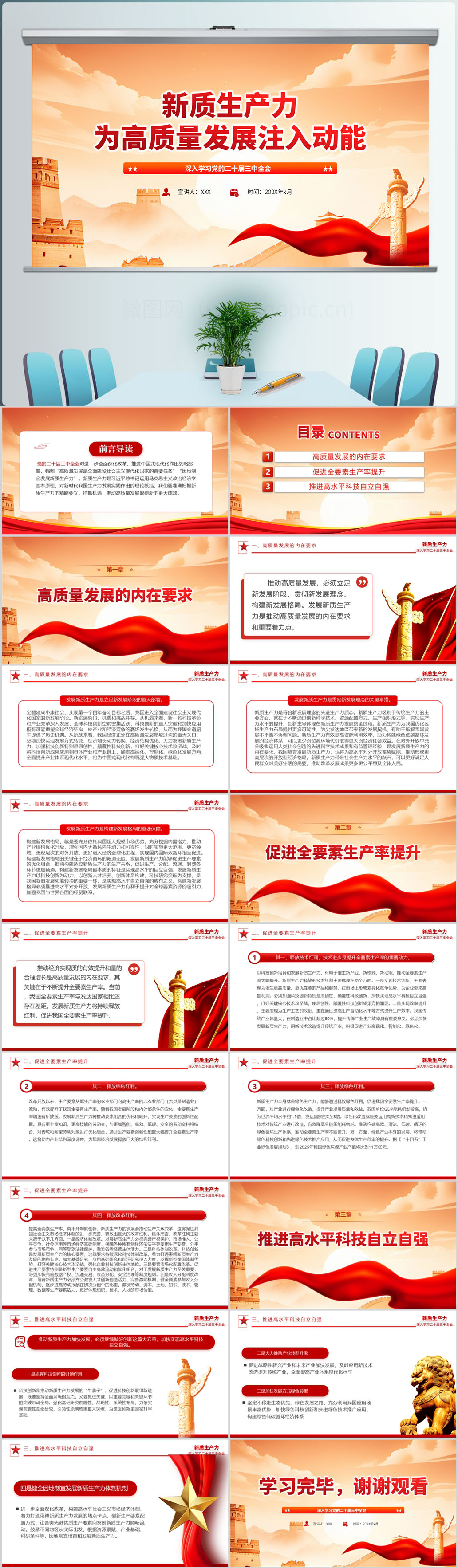 二十届三中全会精神新质生产力为高质量发展注入动能ppt模板(内含WORD演讲稿