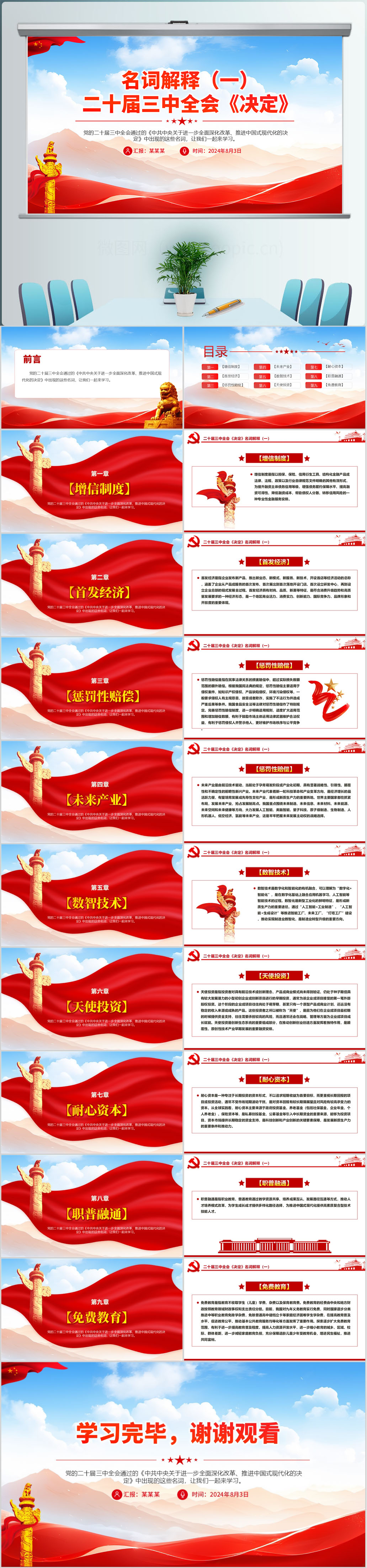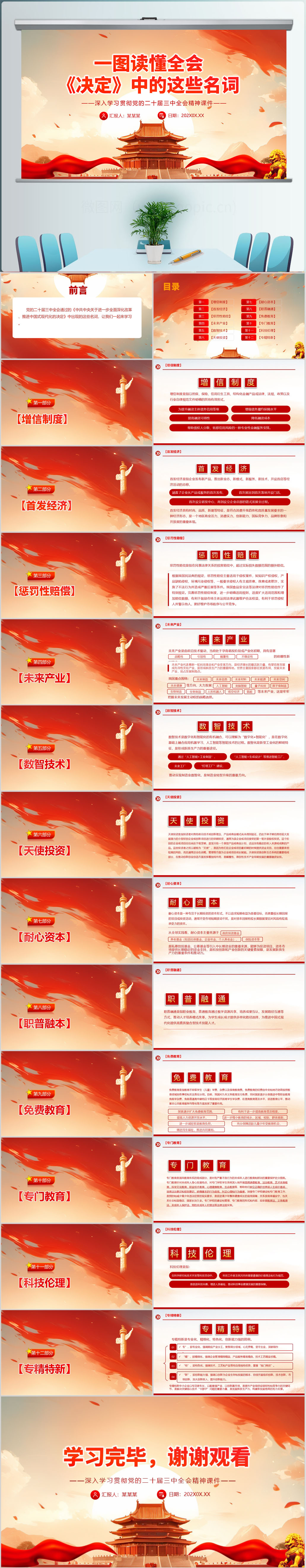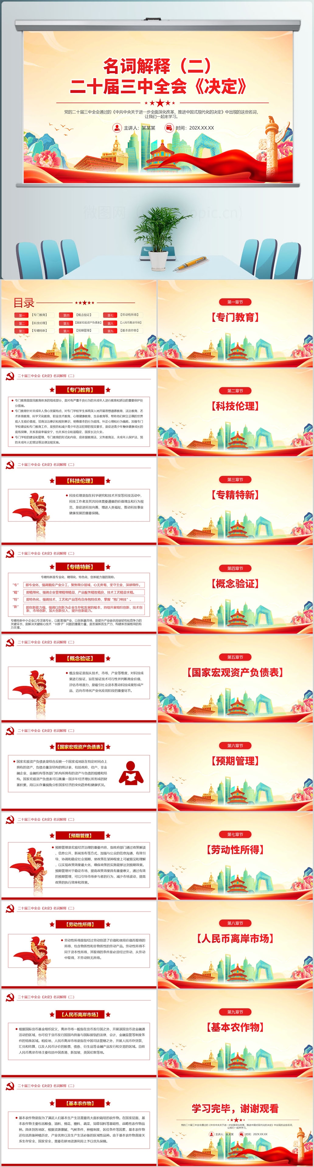 2024二十届三中全会《决定》名词解释(一)解读党课PPT模板(内含WORD演讲稿)