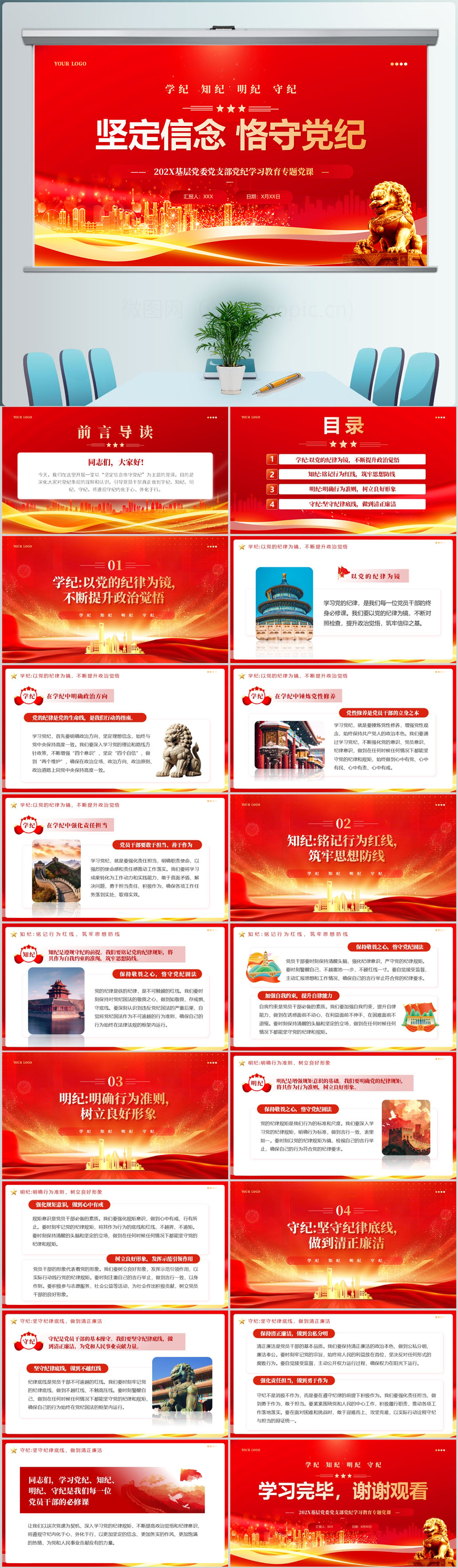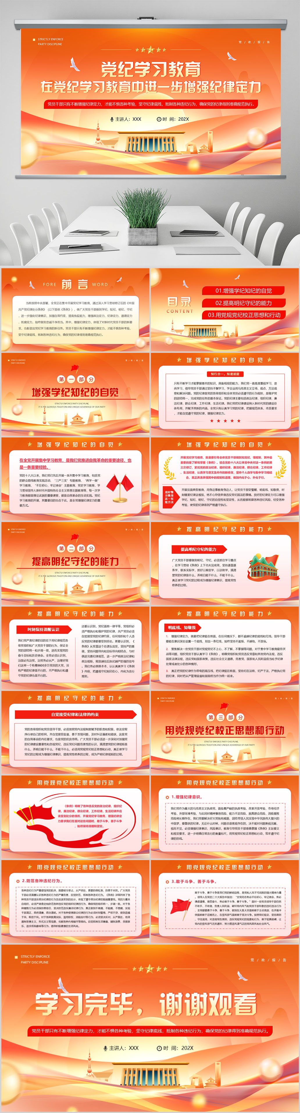 学习在党纪学习教育中进一步增强纪律定力党课ppt模板(内含WORD演讲稿)