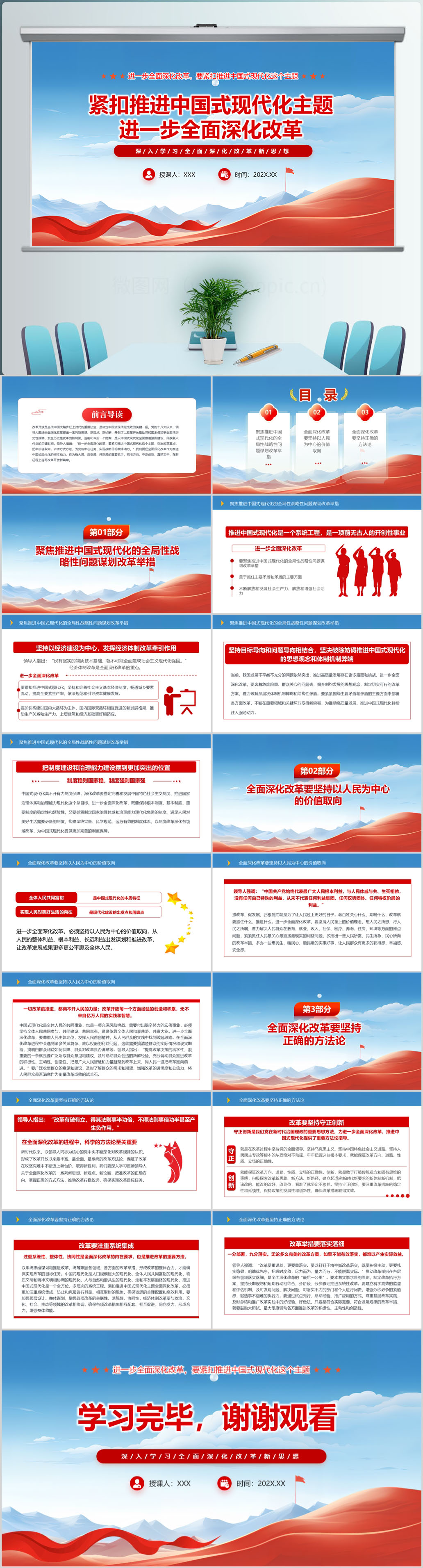 紧扣推进中国式现代化主题 进一步全面深化改革党课ppt模板(内含WORD演讲稿)