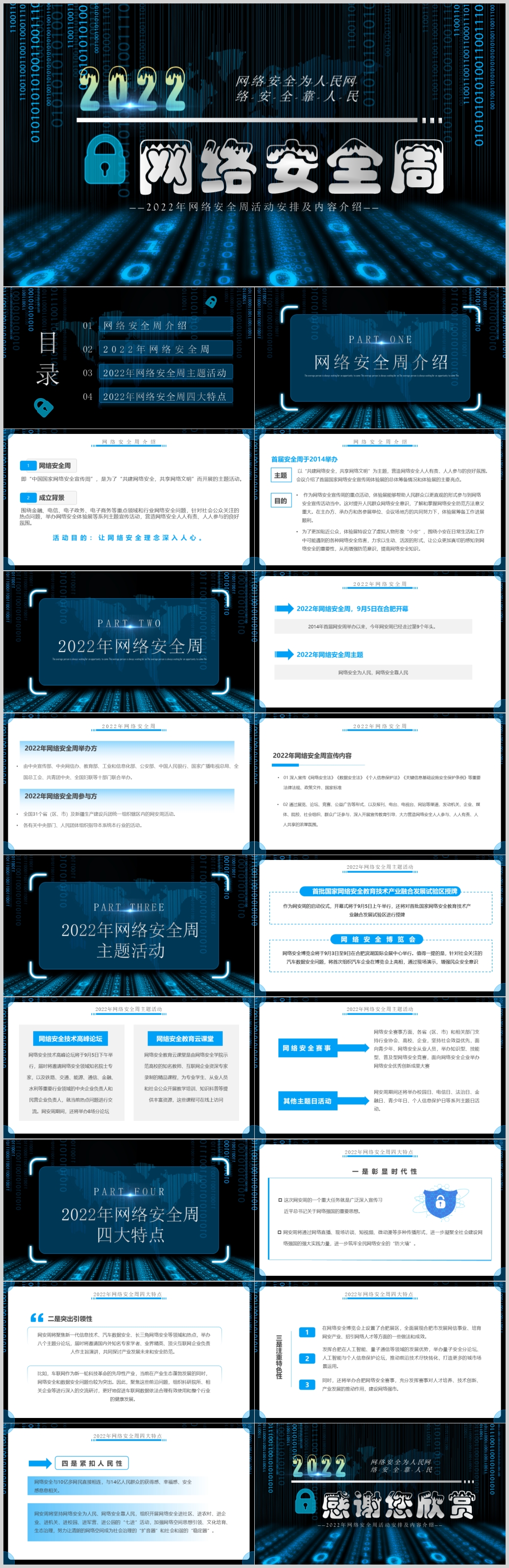 2022蓝色网络安全宣传周科普宣传活动介绍ppt模板