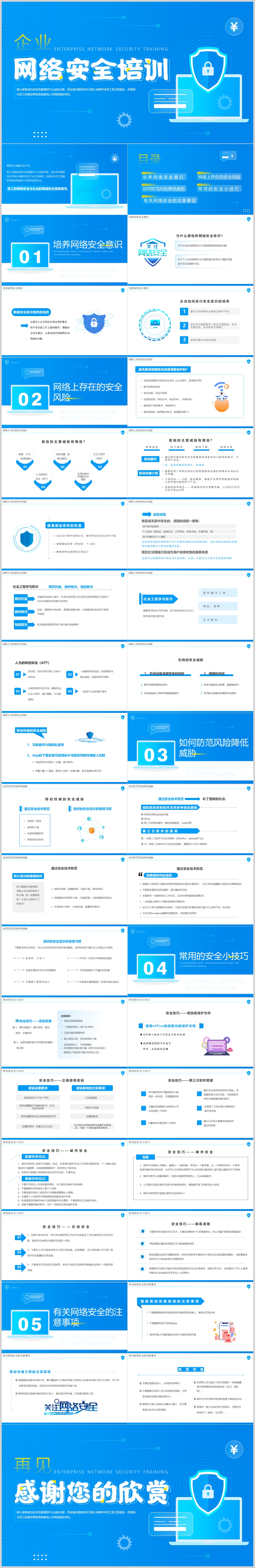 蓝色网络安全周知识培训的注意事项安全小技巧PPT模板