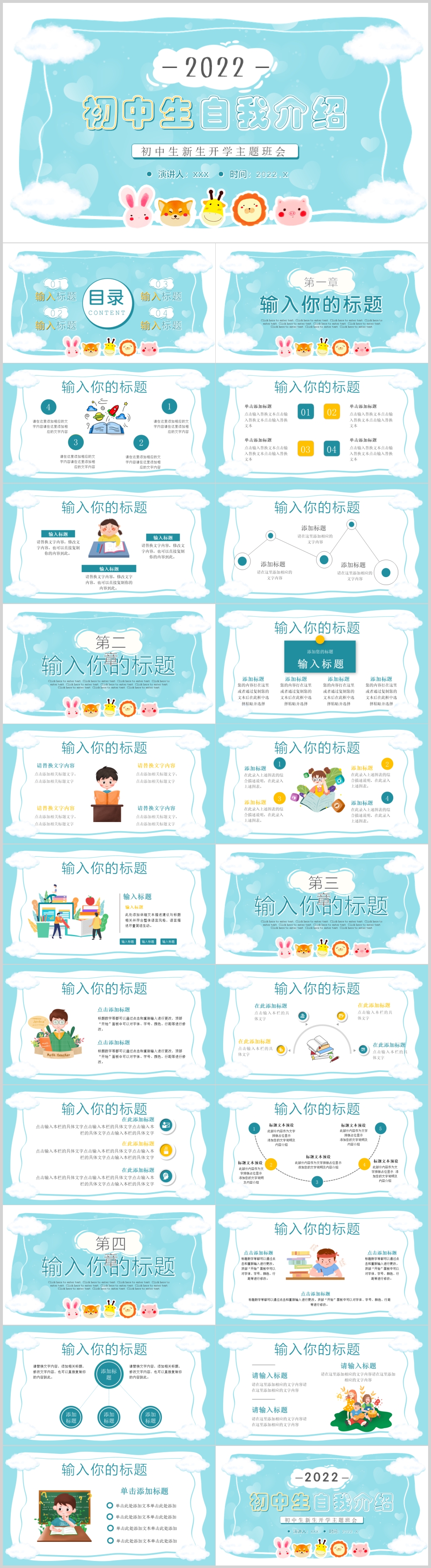 卡通初中生新生自我介绍开学主题班会PPT模板