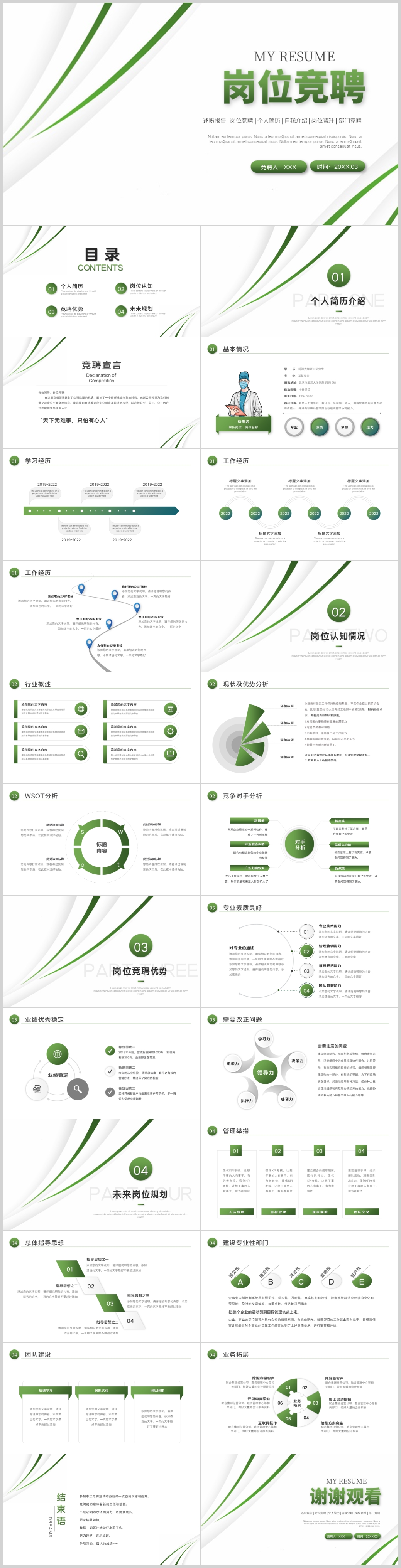 绿色几何商务风个人工作述职竞聘报告PPT模板