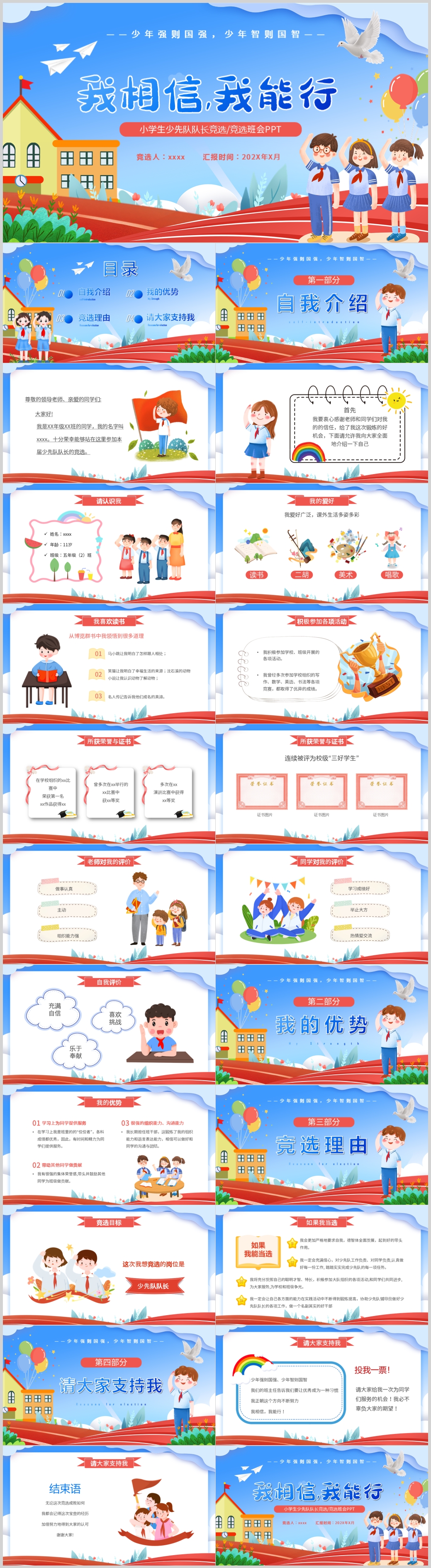 卡通小学生少先队大队委竞选班会PPT模板