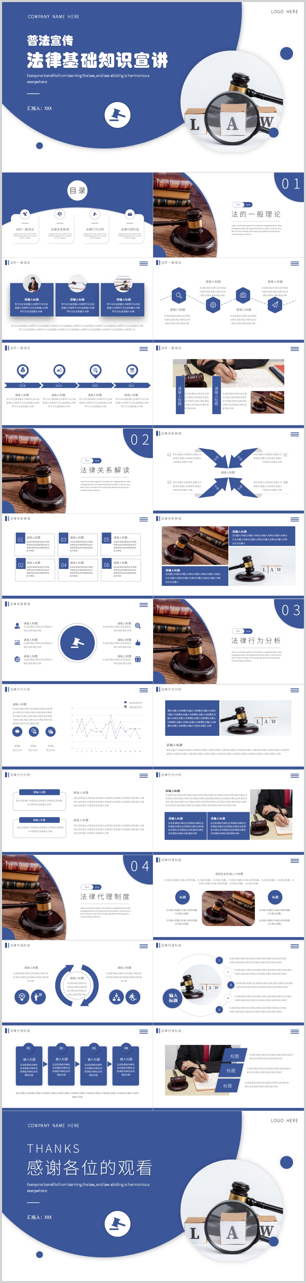 蓝色大气法律讲座知识学习教育动态PPT模板