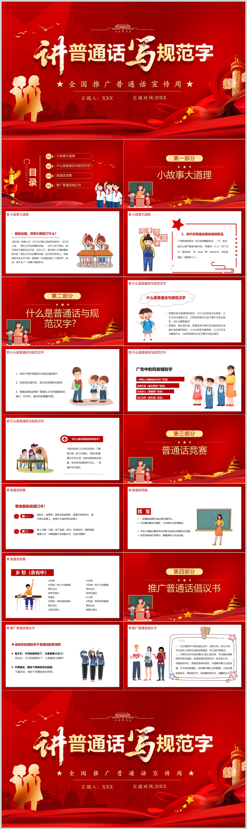 红色全国推广普通话宣传周主题活动ppt模板