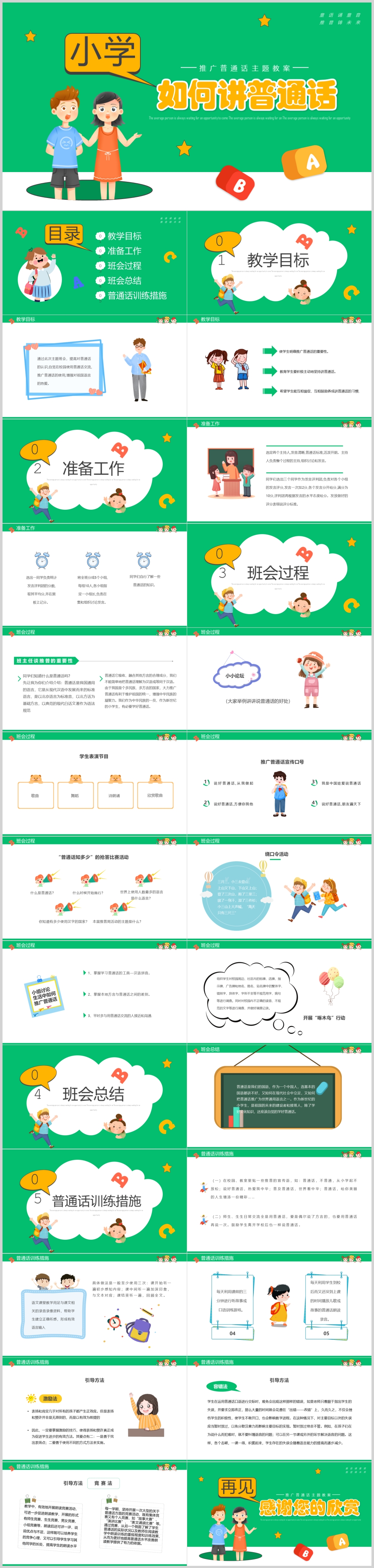 绿色卡通如何讲普通话推广普通话主题班会课件ppt模板