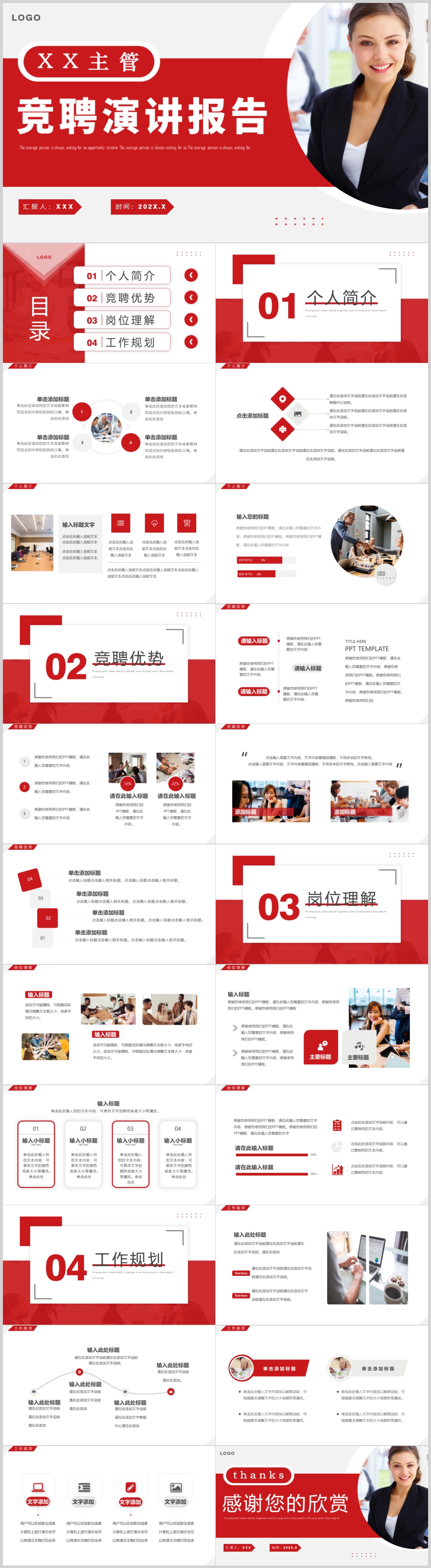 红色商务岗位竞聘述职演讲报告ppt模板