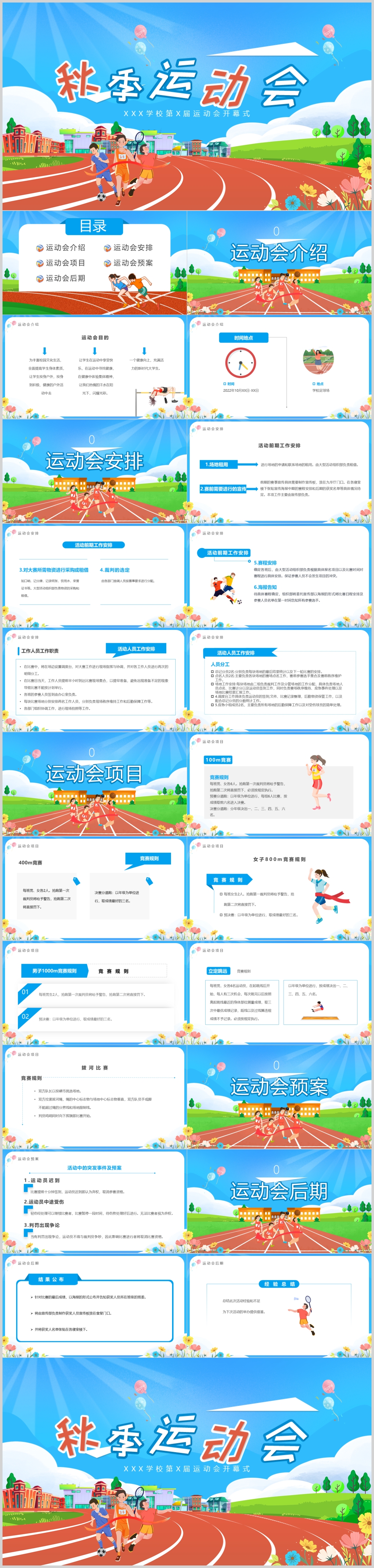 卡通校园秋季运动会介绍主题班会课件ppt模板