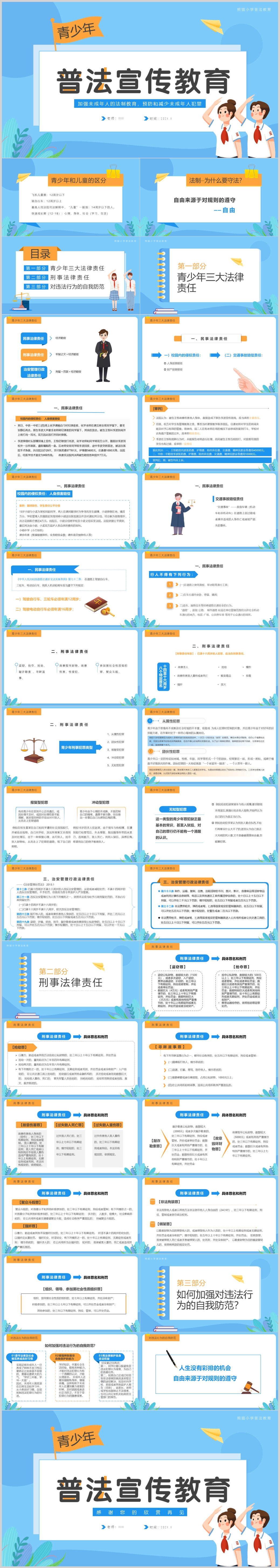 青少年学生校园普法宣传教育主题班会课件PPT模板