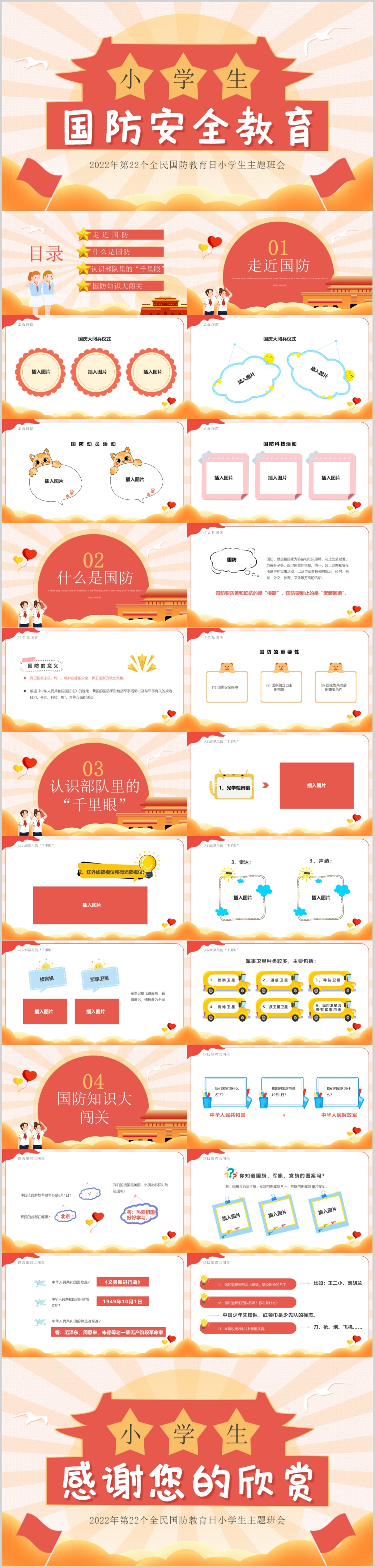 卡通中小学生全民国防安全教育日主题班会课件ppt模板