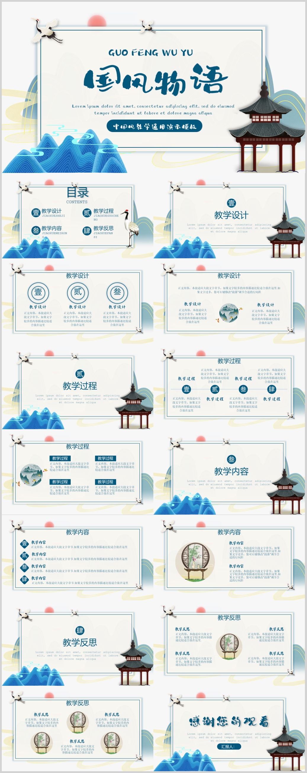 中国风国风国学文化教育教学课件PPT模板