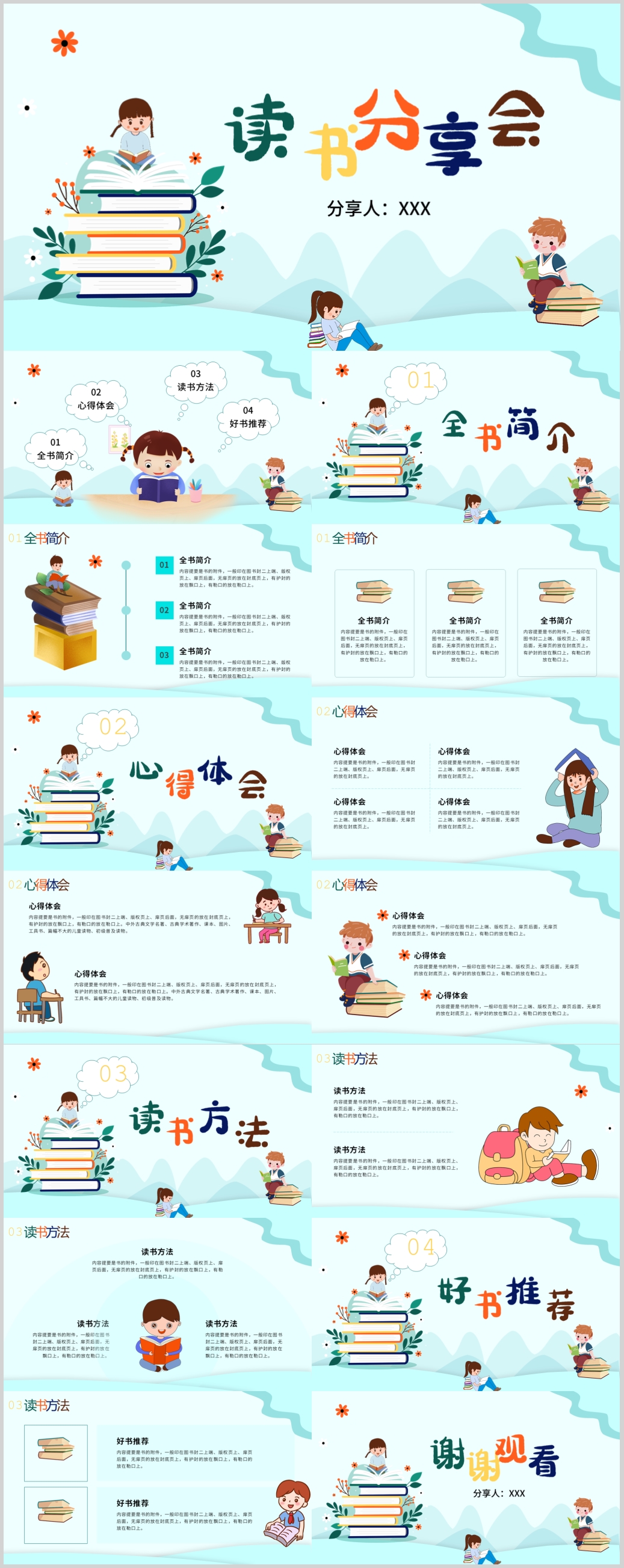 可爱卡通好书推荐阅读读书分享会ppt模板