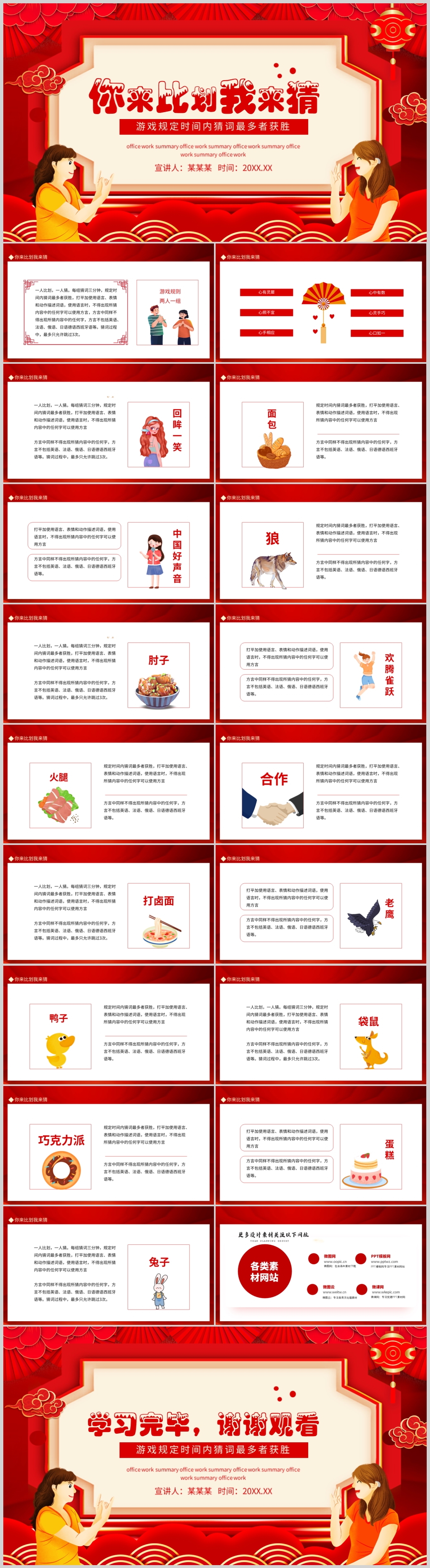 红色卡通你来比划我来猜主题班会活动课件PPT模板