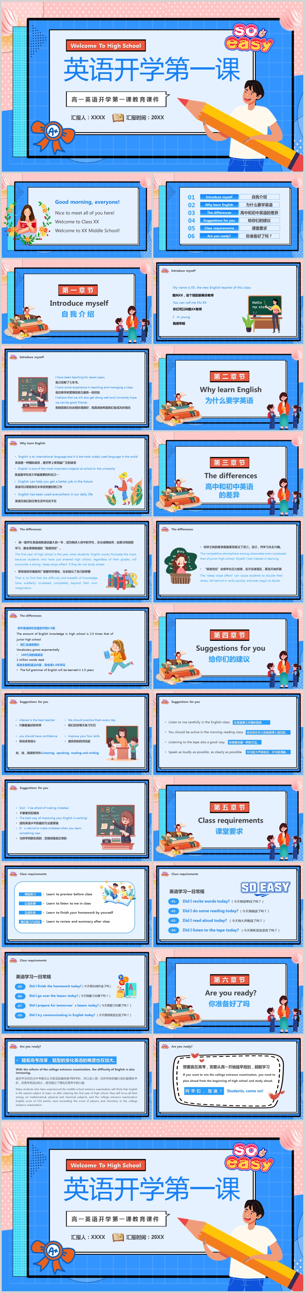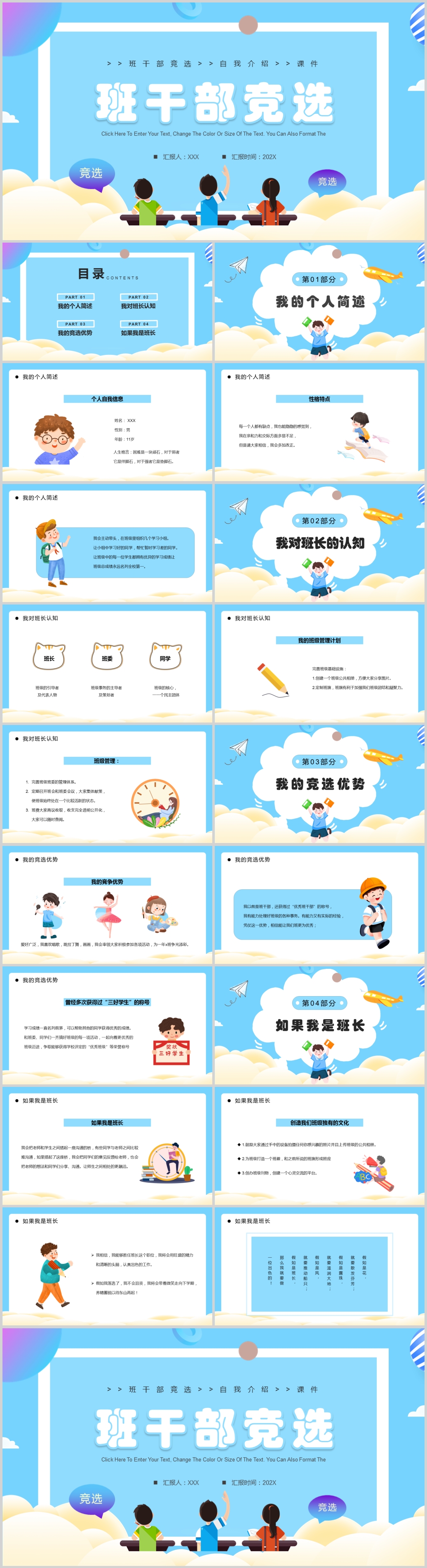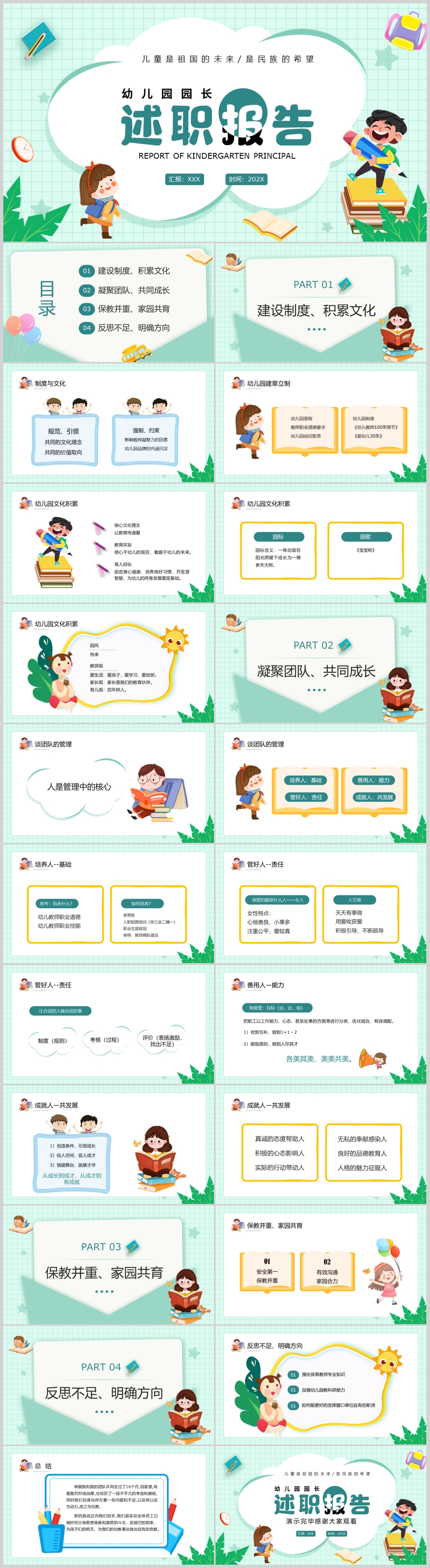 卡通幼儿园末期新学期年中总结述职报告PPT模板