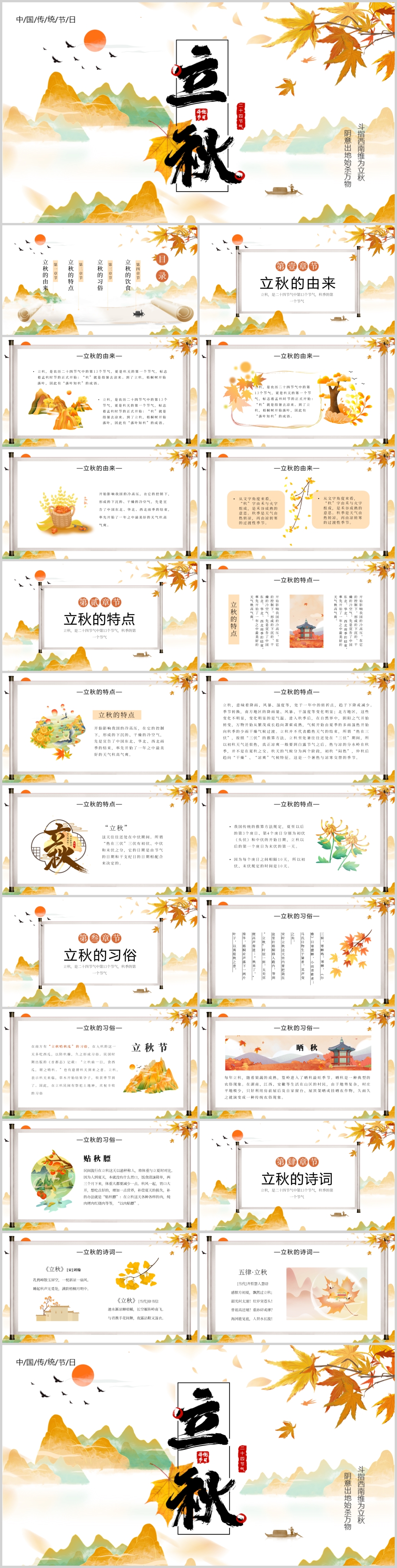 中国风传统节日二十四节气之立秋介绍ppt模板