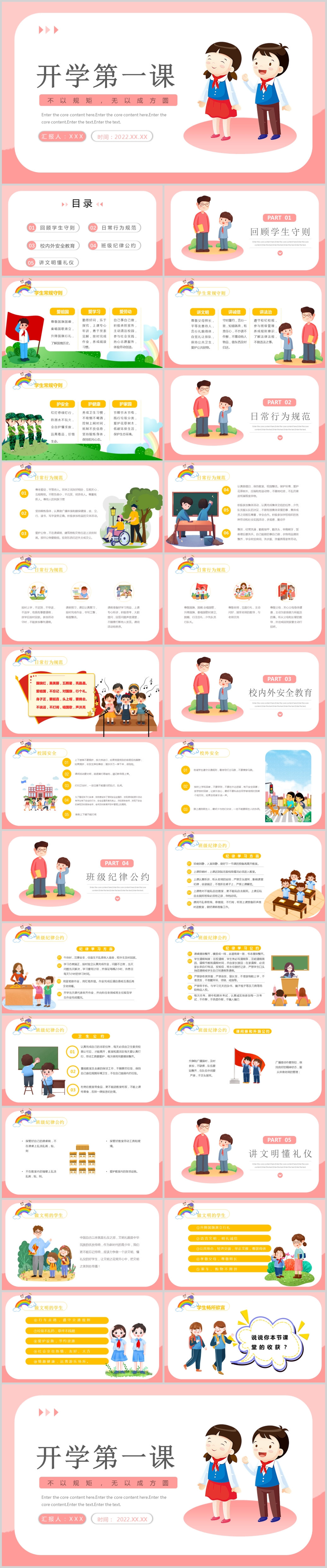 通风秋季小学开学第一课立规矩主题班会课件模板