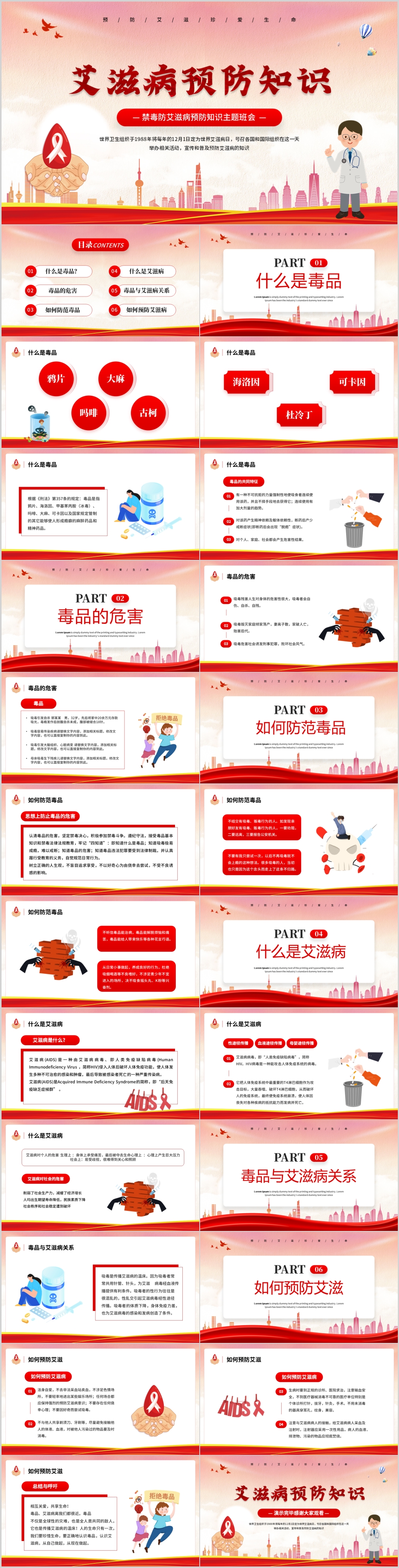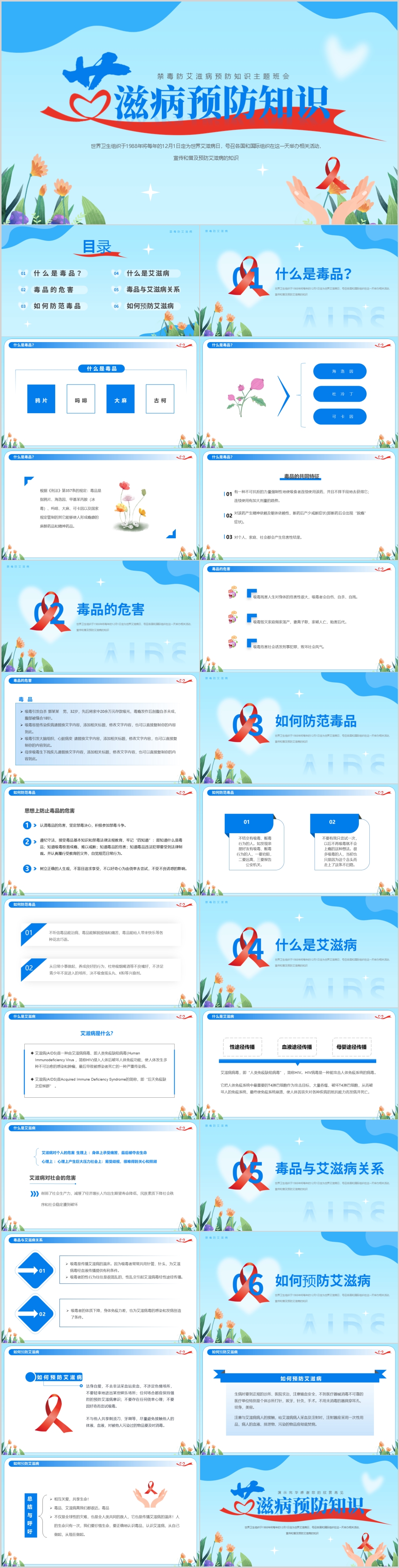 2022年世界艾滋病禁毒防艾滋病预防知识主题班会课件PPT模板