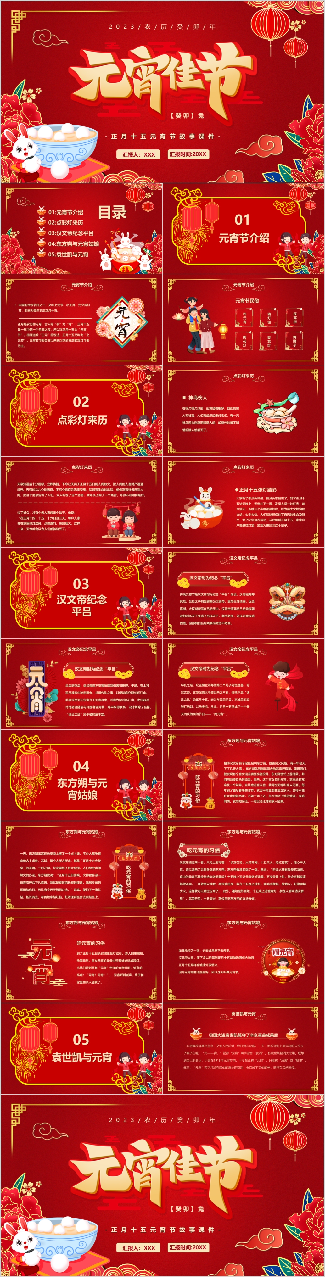 红色喜庆正月十五元宵节节日介绍主题班会课件PPT模板
