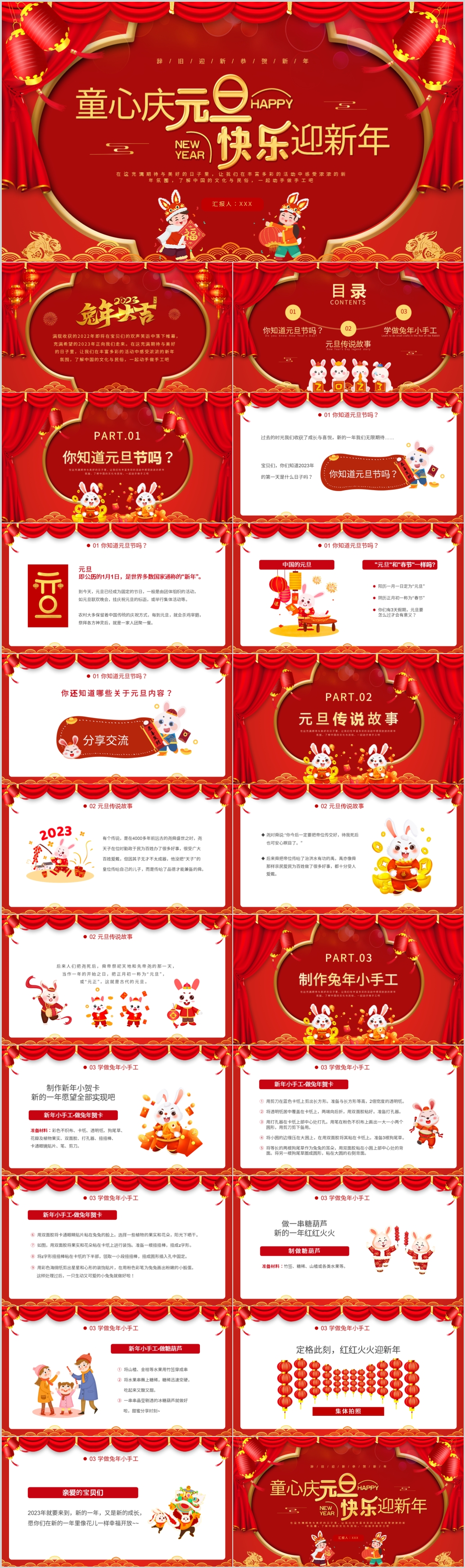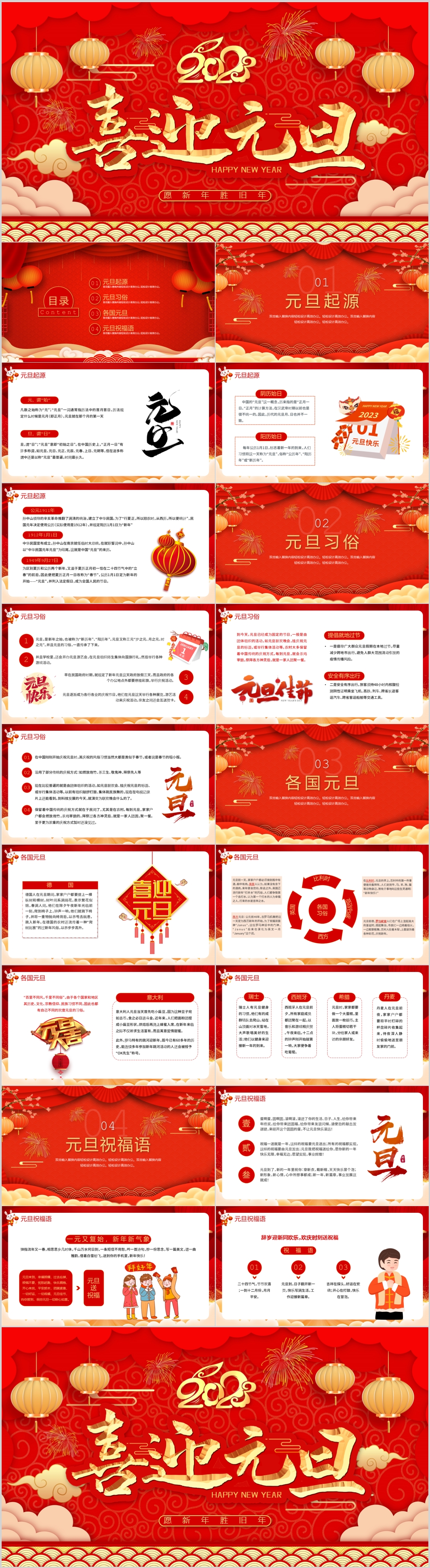 2023红色喜迎元旦节日介绍通用主题班会课件PPT模板