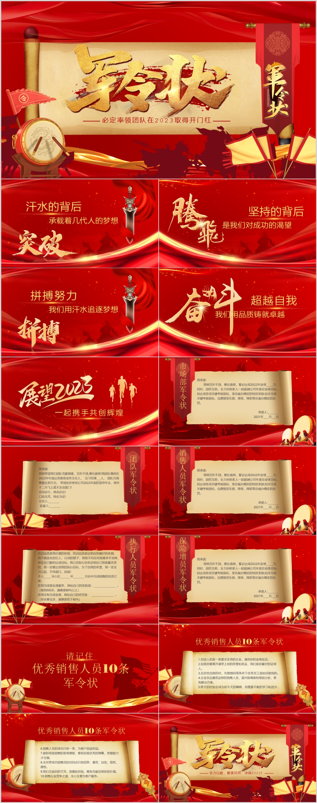 红色2023企业开门红员工动员誓师大会军令状PPT模板