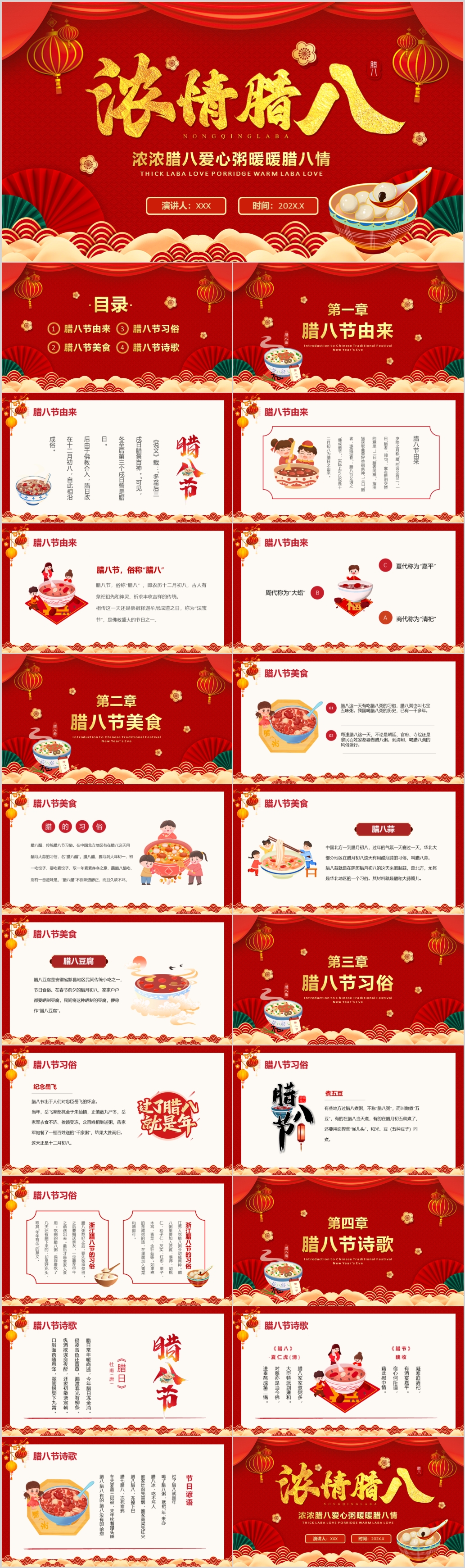 红色喜庆小年浓情腊八节节日介绍习俗主题课件PPT模板