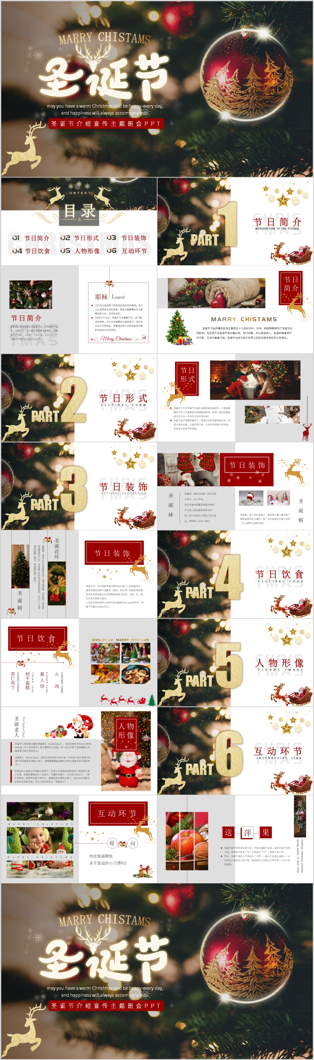 红色喜迎双旦圣诞节元旦节节日新年介绍主题PPT模板