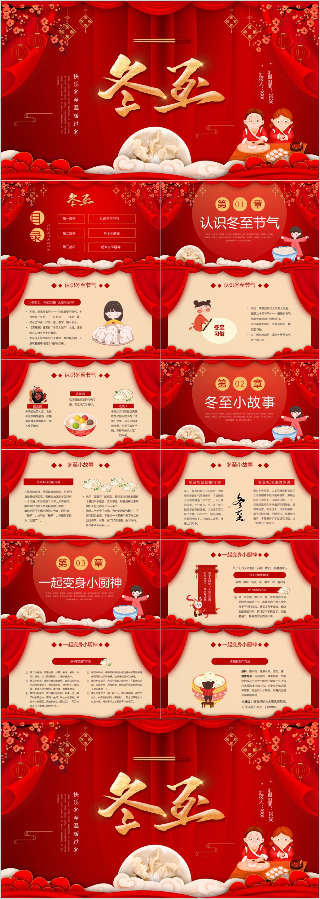 红色中国风二十四节气之冬至介绍主题课件PPT模板