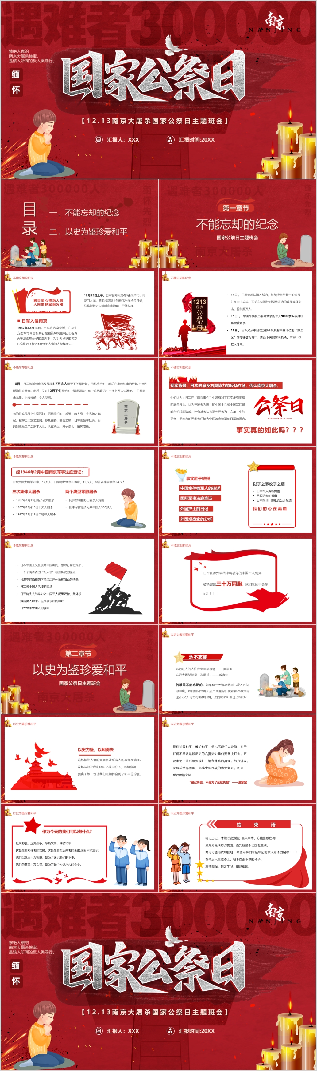 红色纪念12.13南京大屠杀国家公祭日主题班会课件PPT模板
