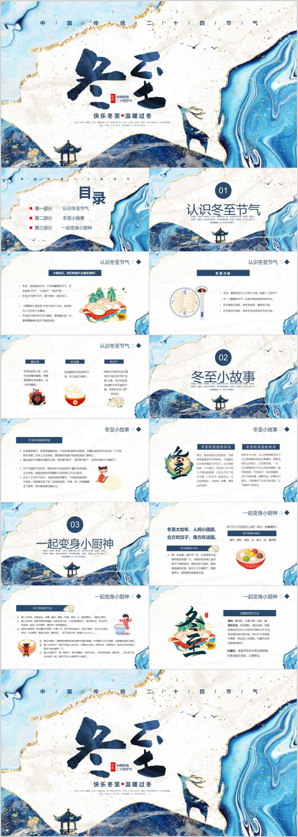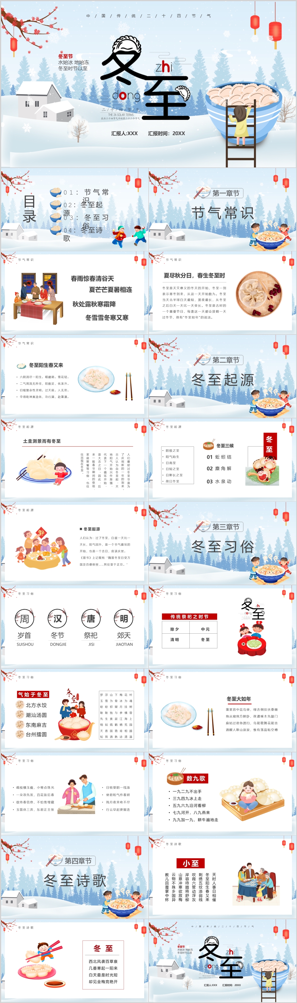 卡通二十四节气传统节日文化介绍冬至主题班会PPT模板