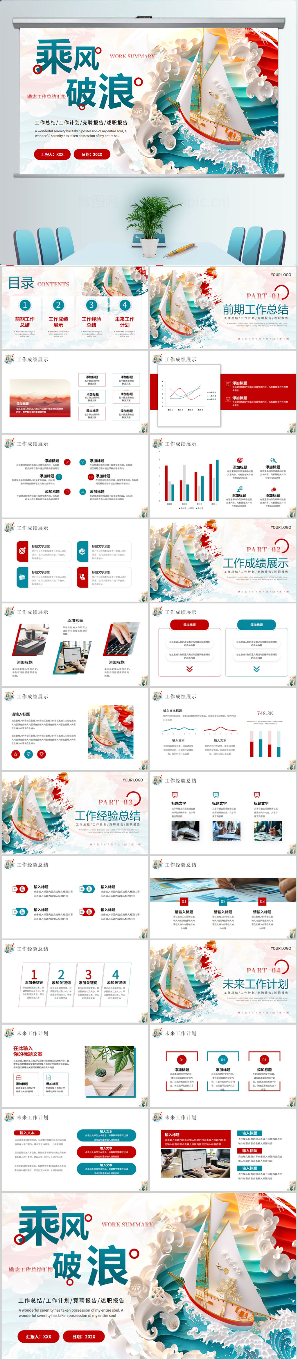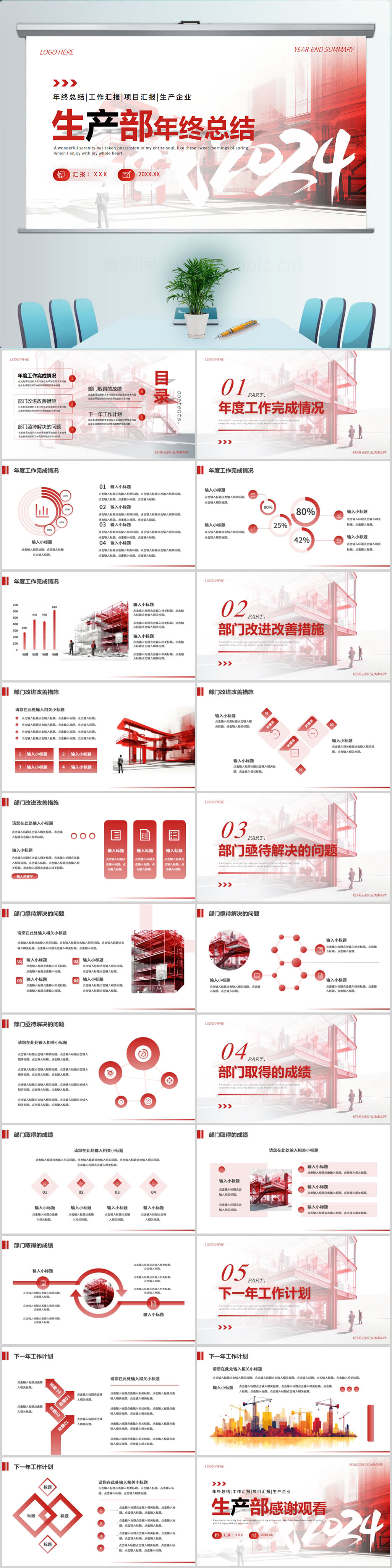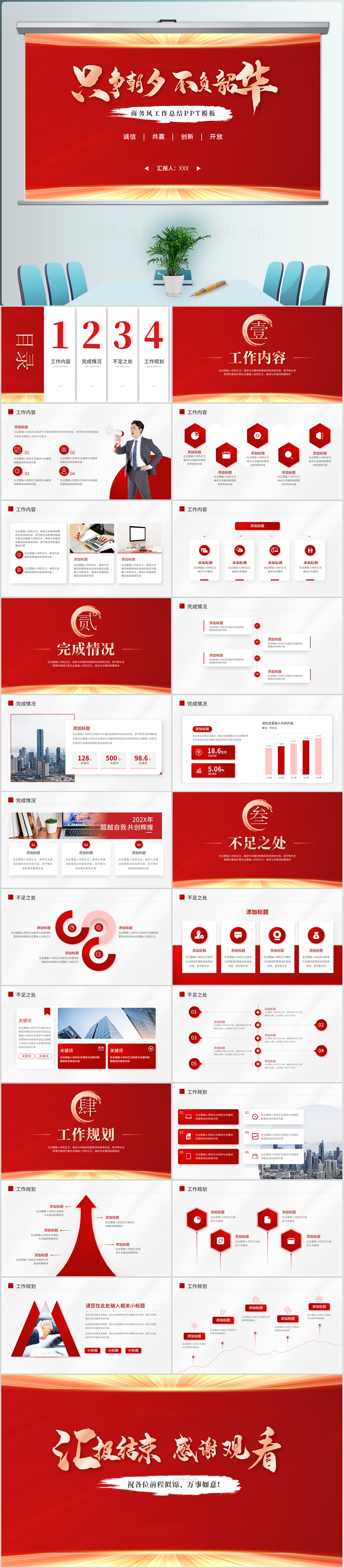 2025红色大气只争朝夕不负韶华年终工作总结工作汇报PPT模板