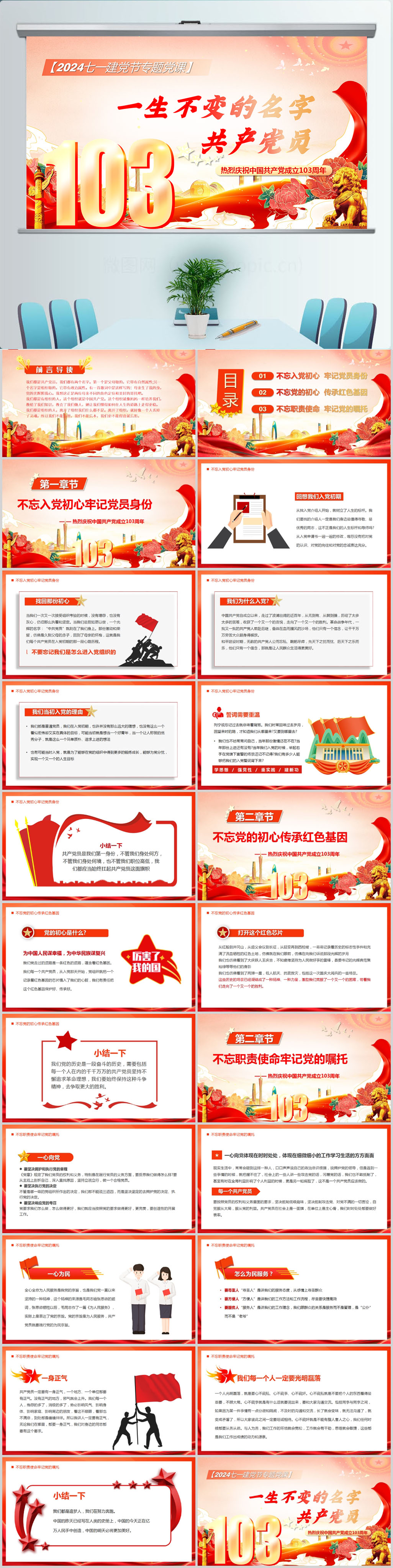 建党103周年一生不变的名字共产党员党建ppt模版设计